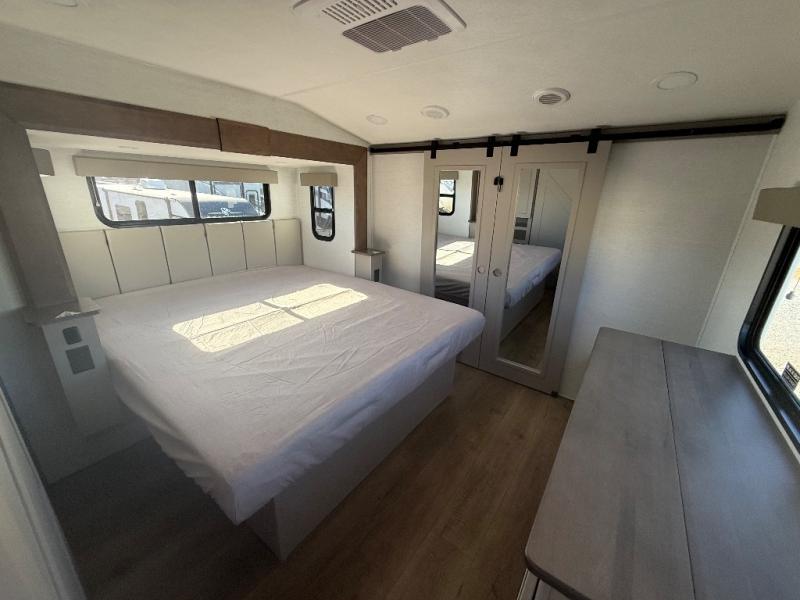 With any Avenue fifth wheel or travel trailer by Alliance RV, you will enjoy more interior space provided by the 8' 5" wide-body construction, and a long list of luxury features. Each is built with Azdel composite sidewalls both inside and out, along with a PVC roof for added strength. There are innovative storage solutions that include hidden storage behind the TV, within end tables and ottomans, and more. Since these units feature no carpet throughout, cleaning will be easier than ever, and there are flush floor slides throughout for seamless living spaces. The Avenue also comes with the OTG Solar Package with a 400 watt solar panel, inverter prep, multiple outlets, and more to keep you charged up!