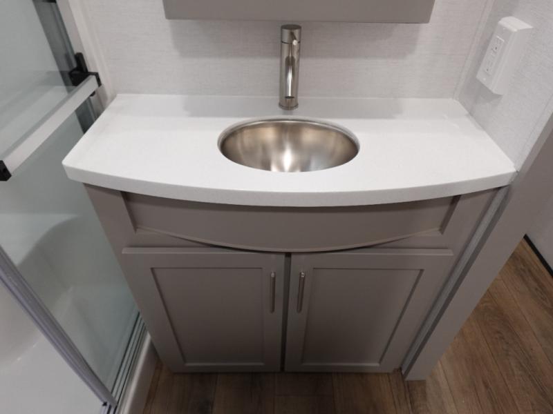 With any Avenue fifth wheel or travel trailer by Alliance RV, you will enjoy more interior space provided by the 8' 5" wide-body construction, and a long list of luxury features. Each is built with Azdel composite sidewalls both inside and out, along with a PVC roof for added strength. There are innovative storage solutions that include hidden storage behind the TV, within end tables and ottomans, and more. Since these units feature no carpet throughout, cleaning will be easier than ever, and there are flush floor slides throughout for seamless living spaces. The Avenue also comes with the OTG Solar Package with a 400 watt solar panel, inverter prep, multiple outlets, and more to keep you charged up!