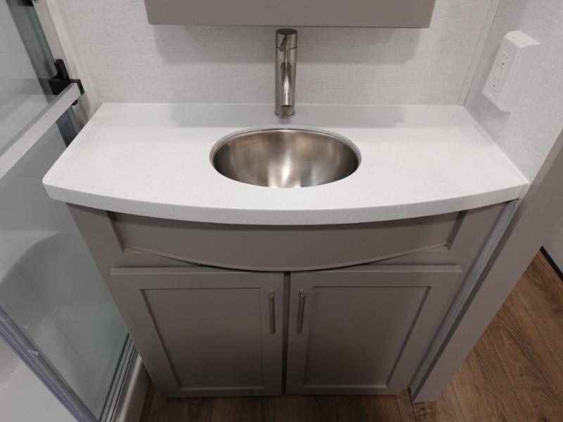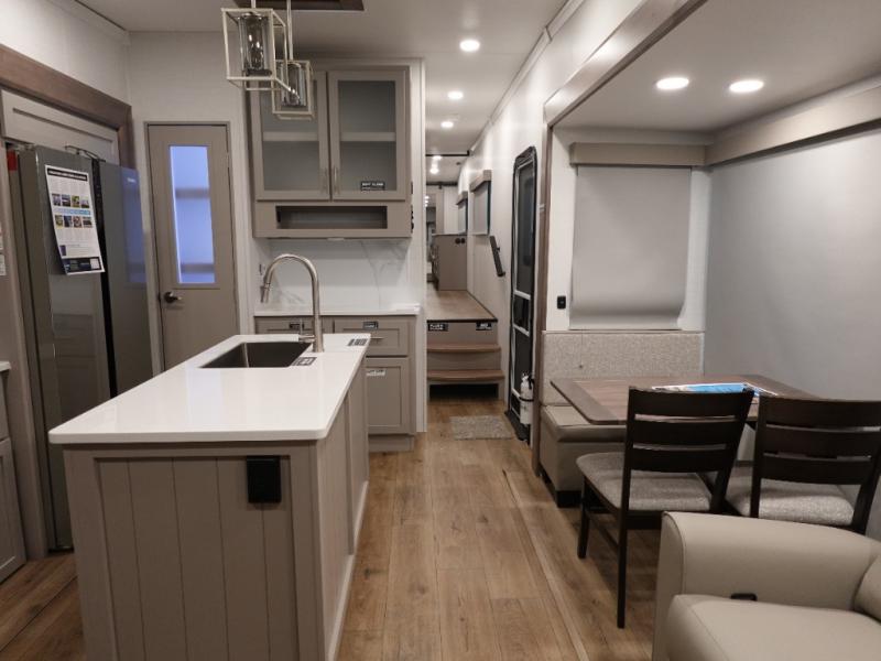 With any Avenue fifth wheel or travel trailer by Alliance RV, you will enjoy more interior space provided by the 8' 5" wide-body construction, and a long list of luxury features. Each is built with Azdel composite sidewalls both inside and out, along with a PVC roof for added strength. There are innovative storage solutions that include hidden storage behind the TV, within end tables and ottomans, and more. Since these units feature no carpet throughout, cleaning will be easier than ever, and there are flush floor slides throughout for seamless living spaces. The Avenue also comes with the OTG Solar Package with a 400 watt solar panel, inverter prep, multiple outlets, and more to keep you charged up!