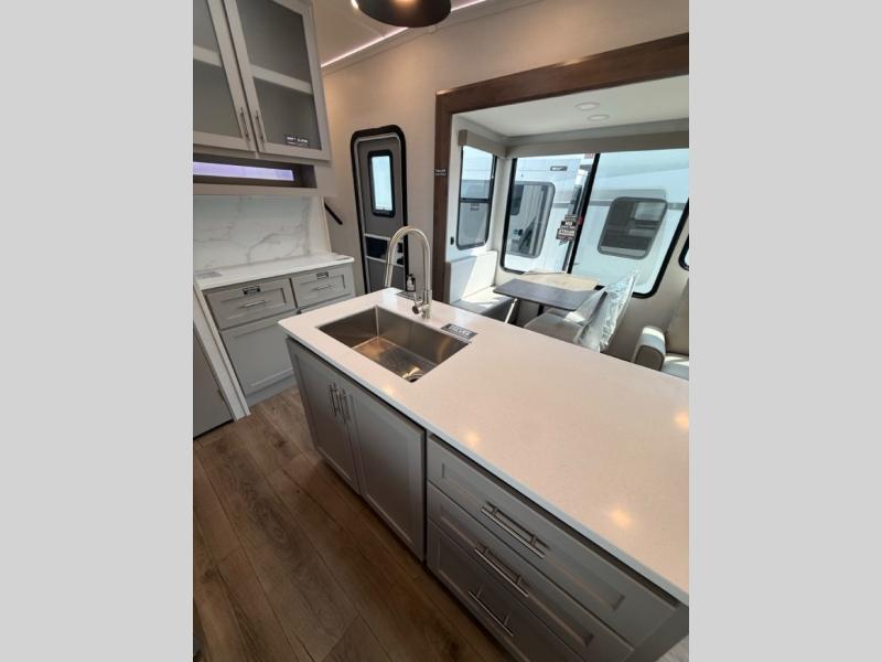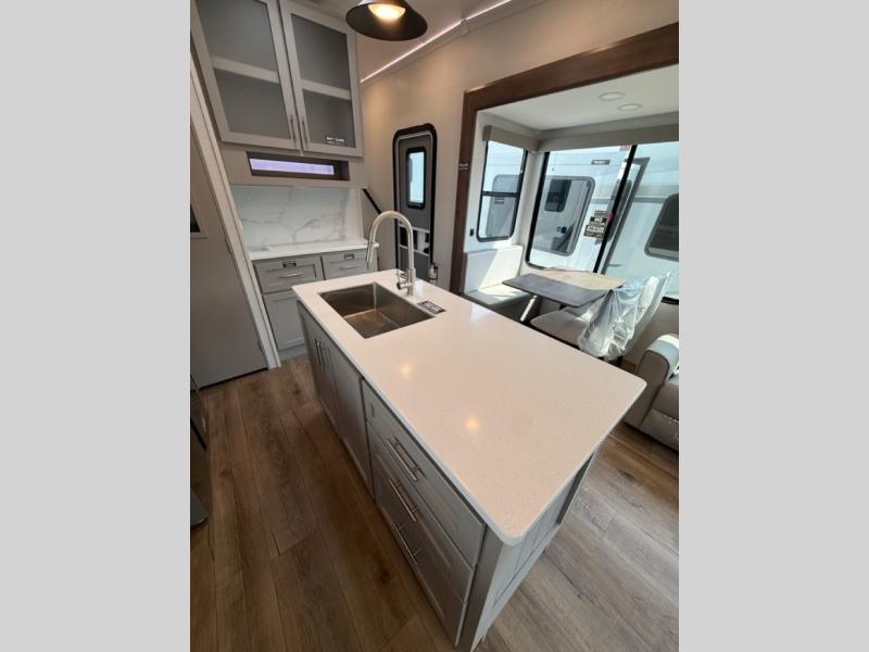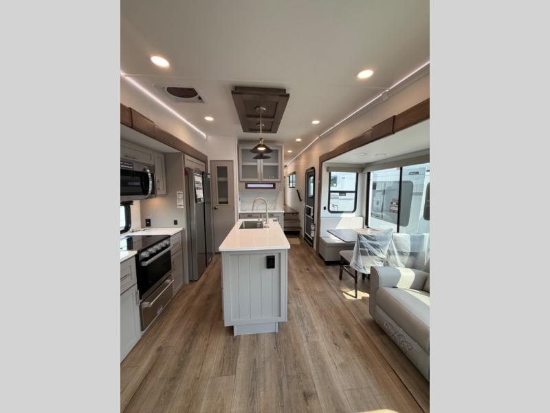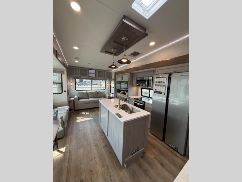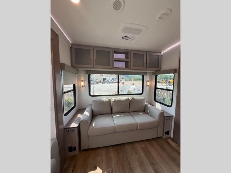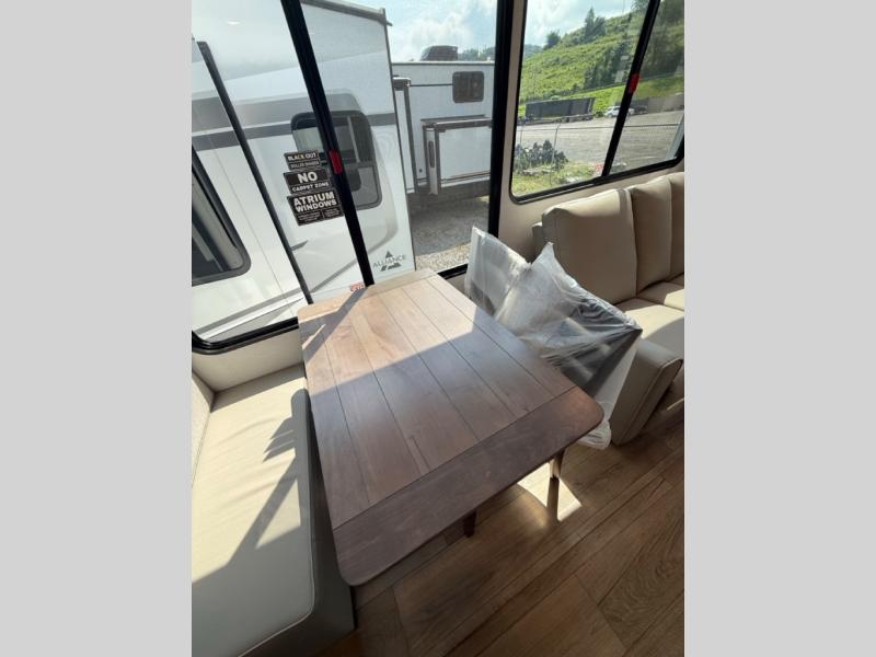 With any Avenue fifth wheel or travel trailer by Alliance RV, you will enjoy more interior space provided by the 8' 5" wide-body construction, and a long list of luxury features. Each is built with Azdel composite sidewalls both inside and out, along with a PVC roof for added strength. There are innovative storage solutions that include hidden storage behind the TV, within end tables and ottomans, and more. Since these units feature no carpet throughout, cleaning will be easier than ever, and there are flush floor slides throughout for seamless living spaces. The Avenue also comes with the OTG Solar Package with a 400 watt solar panel, inverter prep, multiple outlets, and more to keep you charged up!
