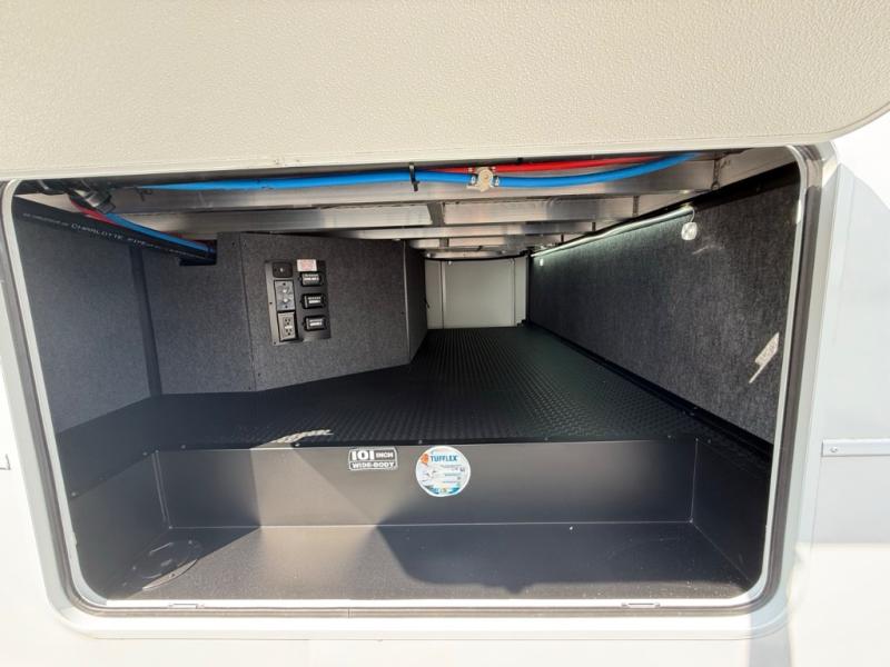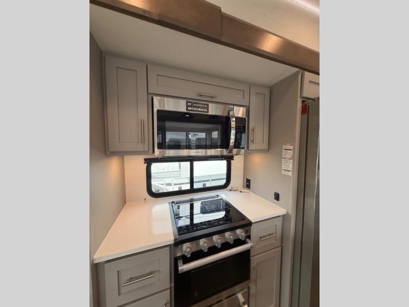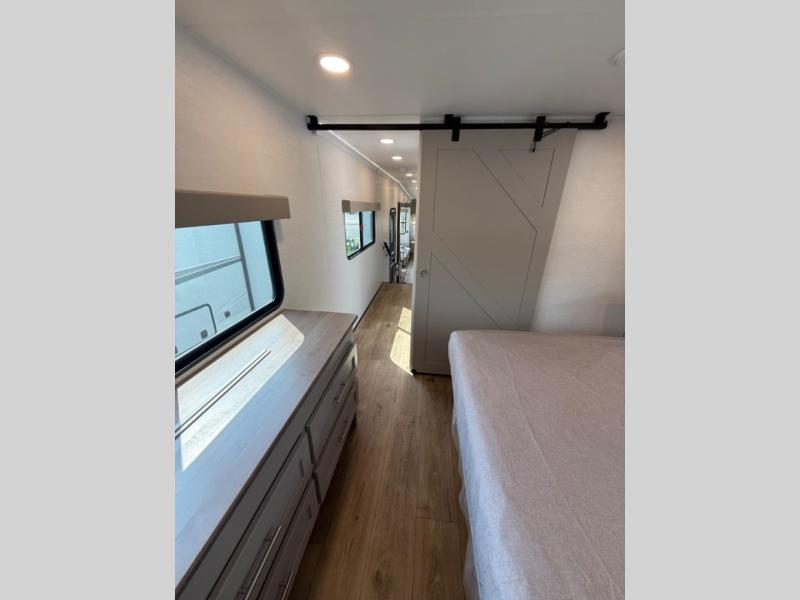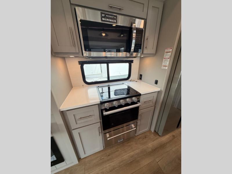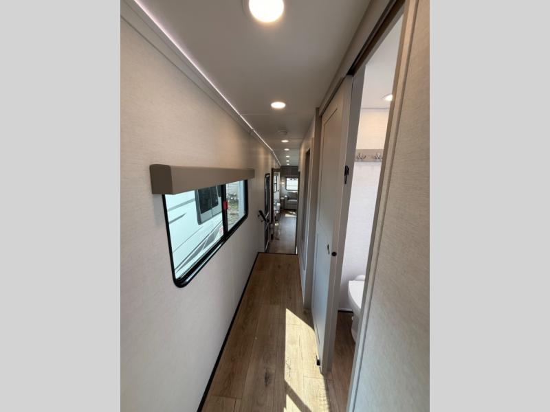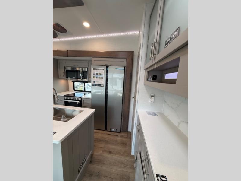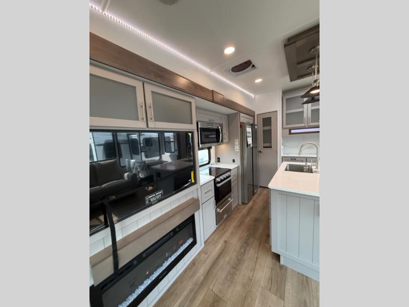 With any Avenue fifth wheel or travel trailer by Alliance RV, you will enjoy more interior space provided by the 8' 5" wide-body construction, and a long list of luxury features. Each is built with Azdel composite sidewalls both inside and out, along with a PVC roof for added strength. There are innovative storage solutions that include hidden storage behind the TV, within end tables and ottomans, and more. Since these units feature no carpet throughout, cleaning will be easier than ever, and there are flush floor slides throughout for seamless living spaces. The Avenue also comes with the OTG Solar Package with a 400 watt solar panel, inverter prep, multiple outlets, and more to keep you charged up!