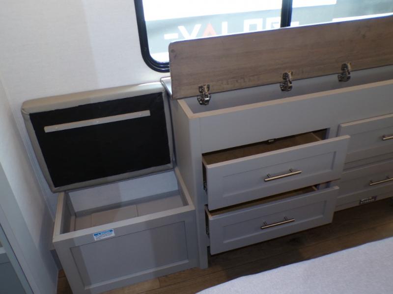 With any Avenue fifth wheel or travel trailer by Alliance RV, you will enjoy more interior space provided by the 8' 5" wide-body construction, and a long list of luxury features. Each is built with Azdel composite sidewalls both inside and out, along with a PVC roof for added strength. There are innovative storage solutions that include hidden storage behind the TV, within end tables and ottomans, and more. Since these units feature no carpet throughout, cleaning will be easier than ever, and there are flush floor slides throughout for seamless living spaces. The Avenue also comes with the OTG Solar Package with a 400 watt solar panel, inverter prep, multiple outlets, and more to keep you charged up!