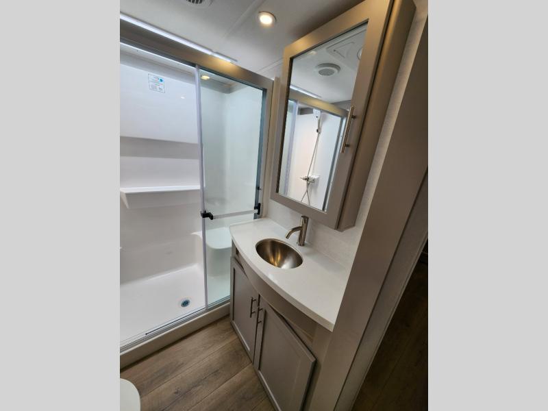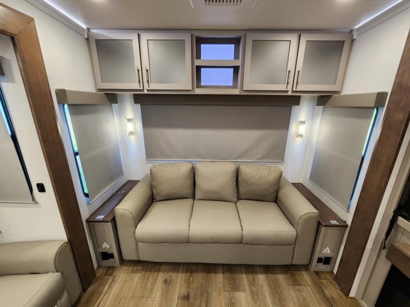 With any Avenue fifth wheel or travel trailer by Alliance RV, you will enjoy more interior space provided by the 8' 5" wide-body construction, and a long list of luxury features. Each is built with Azdel composite sidewalls both inside and out, along with a PVC roof for added strength. There are innovative storage solutions that include hidden storage behind the TV, within end tables and ottomans, and more. Since these units feature no carpet throughout, cleaning will be easier than ever, and there are flush floor slides throughout for seamless living spaces. The Avenue also comes with the OTG Solar Package with a 400 watt solar panel, inverter prep, multiple outlets, and more to keep you charged up!