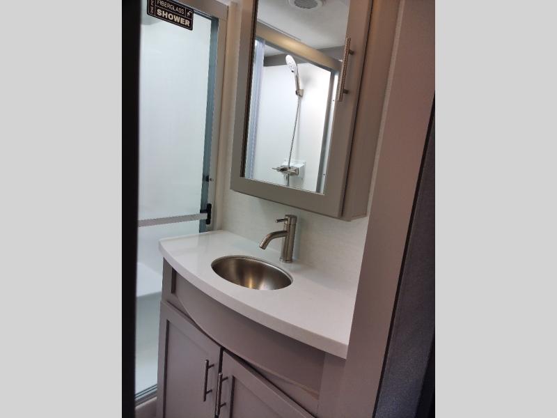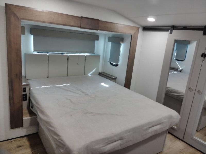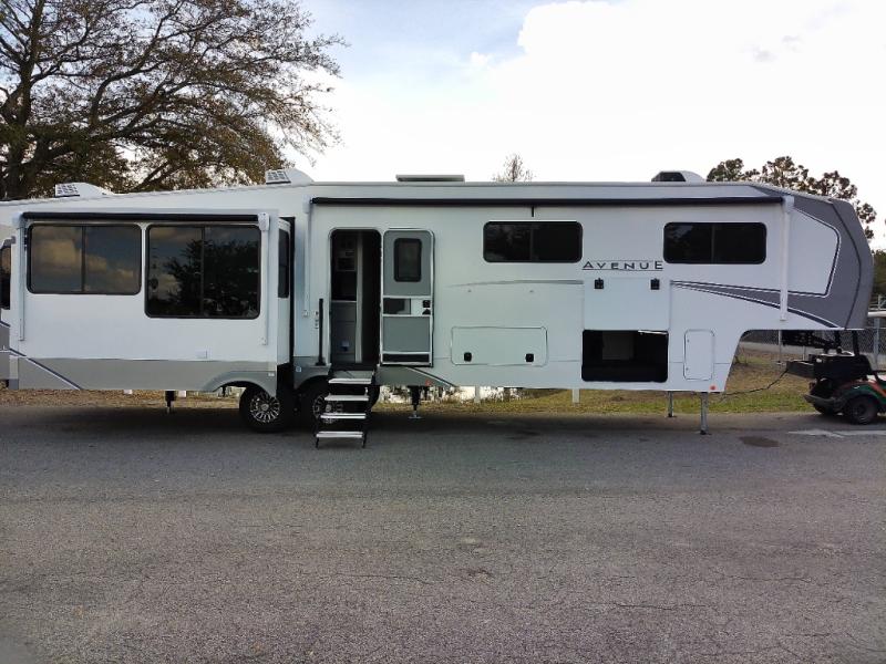 With any Avenue fifth wheel or travel trailer by Alliance RV, you will enjoy more interior space provided by the 8' 5" wide-body construction, and a long list of luxury features. Each is built with Azdel composite sidewalls both inside and out, along with a PVC roof for added strength. There are innovative storage solutions that include hidden storage behind the TV, within end tables and ottomans, and more. Since these units feature no carpet throughout, cleaning will be easier than ever, and there are flush floor slides throughout for seamless living spaces. The Avenue also comes with the OTG Solar Package with a 400 watt solar panel, inverter prep, multiple outlets, and more to keep you charged up!