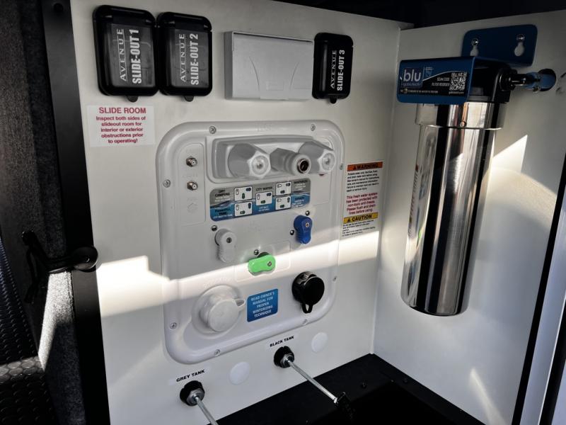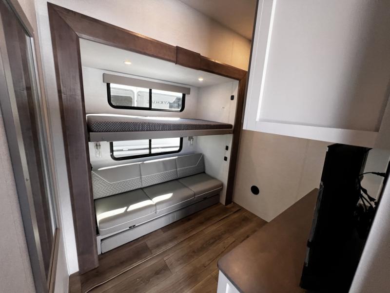 With any Avenue fifth wheel or travel trailer by Alliance RV, you will enjoy more interior space provided by the 8' 5" wide-body construction, and a long list of luxury features. Each is built with Azdel composite sidewalls both inside and out, along with a PVC roof for added strength. There are innovative storage solutions that include hidden storage behind the TV, within end tables and ottomans, and more. Since these units feature no carpet throughout, cleaning will be easier than ever, and there are flush floor slides throughout for seamless living spaces. The Avenue also comes with the OTG Solar Package with a 400 watt solar panel, inverter prep, multiple outlets, and more to keep you charged up!