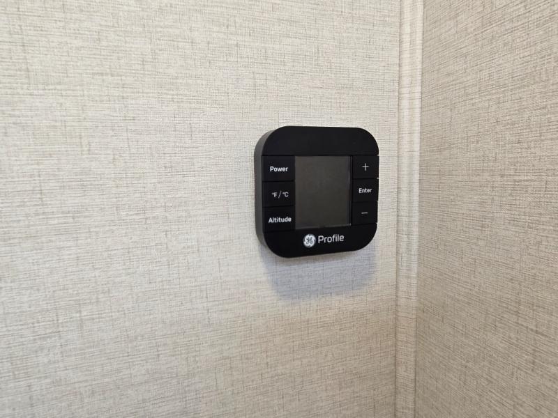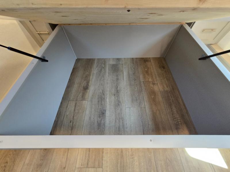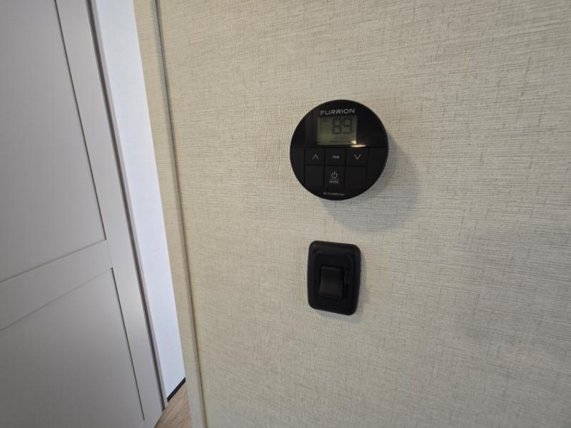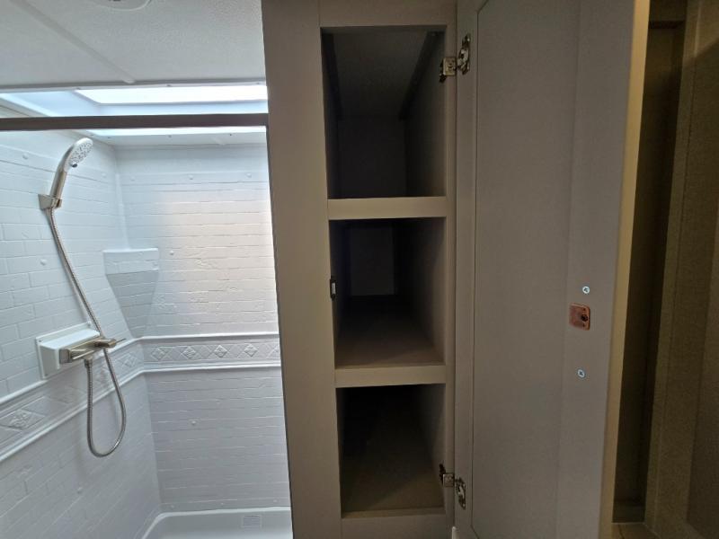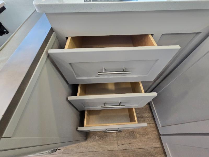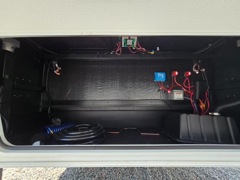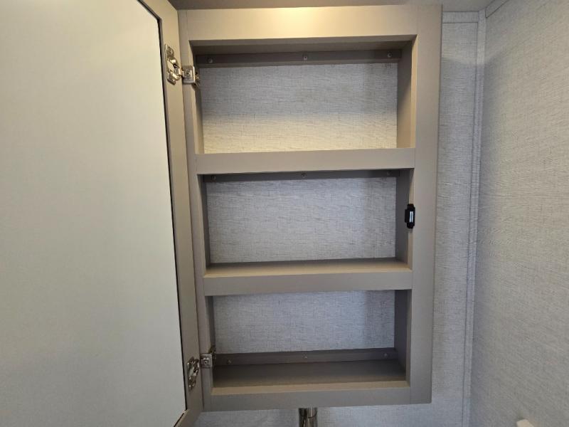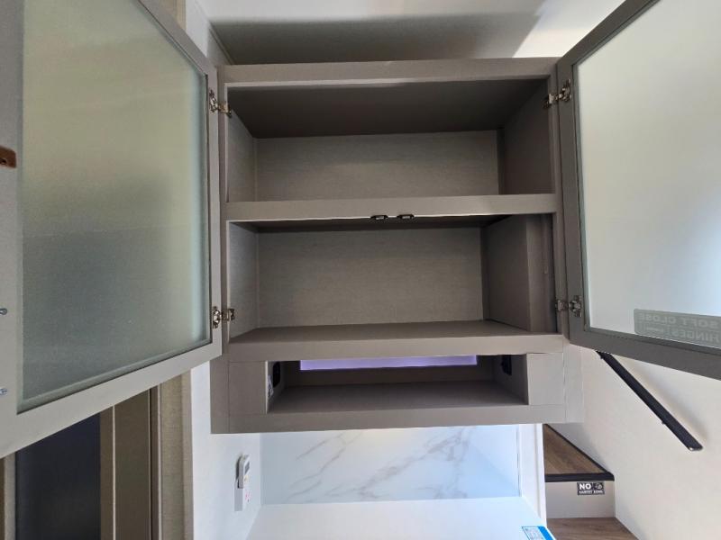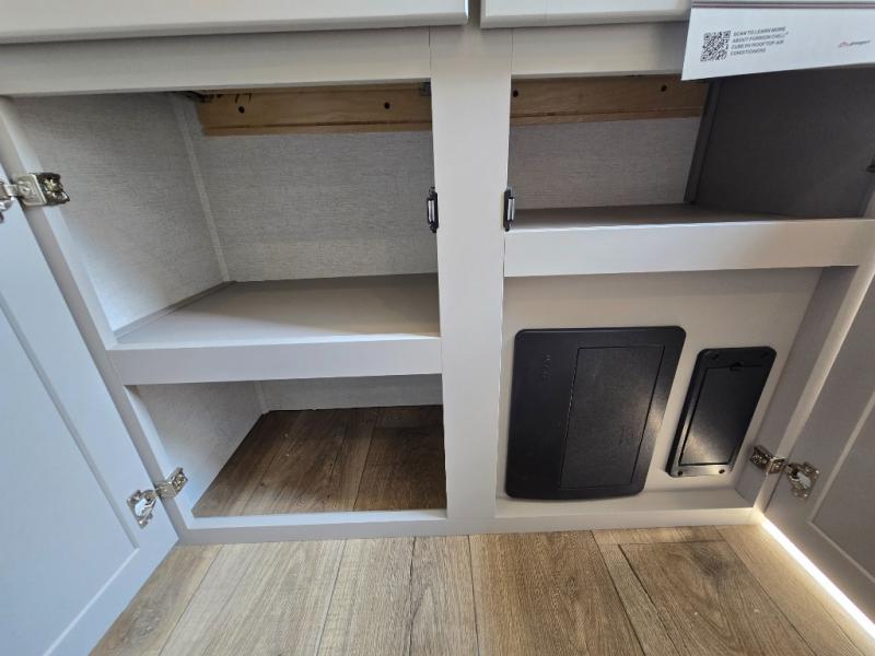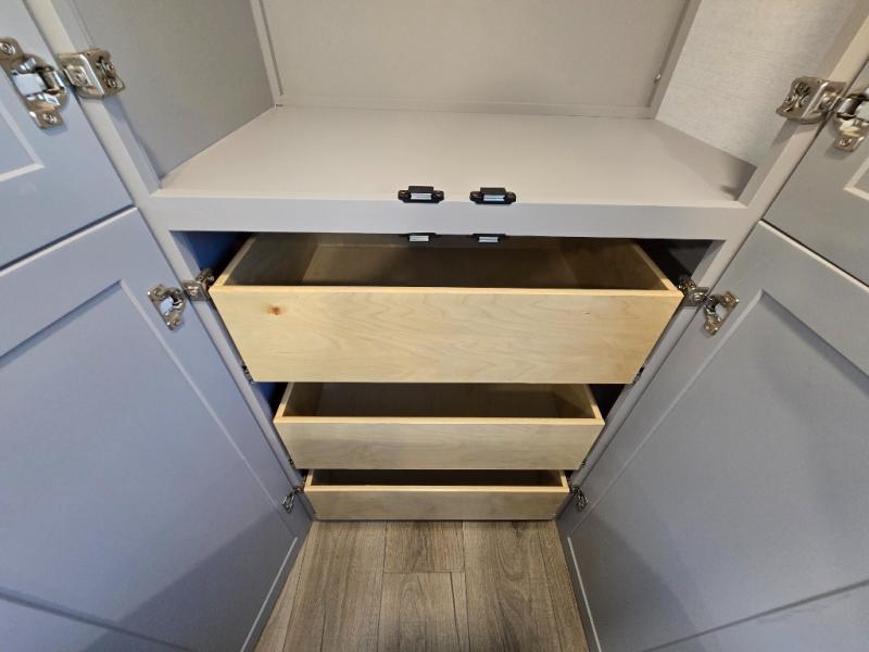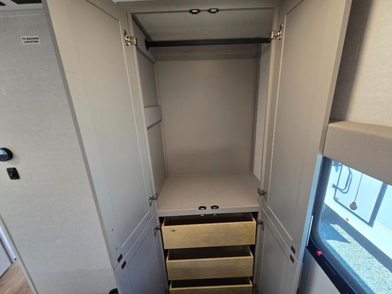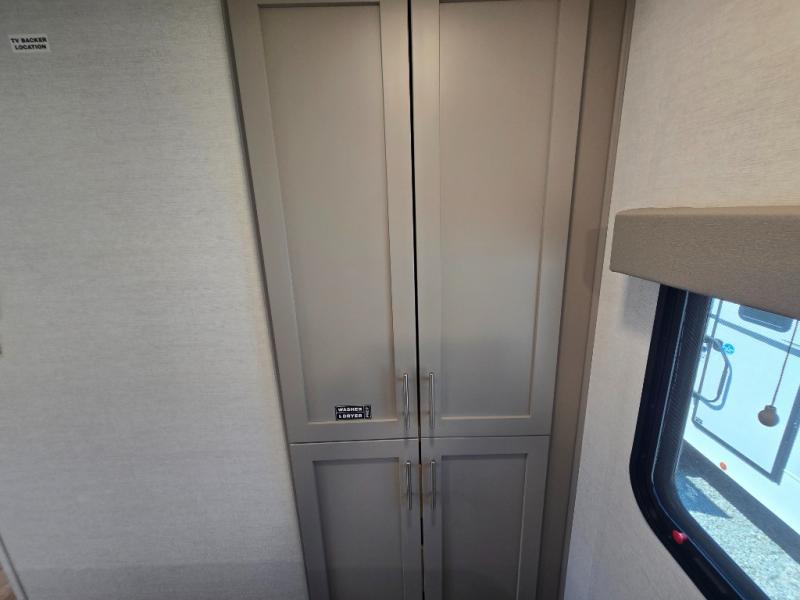 Washer/dryer prep in the wardrobe—rare in a fifth wheel under 30'.