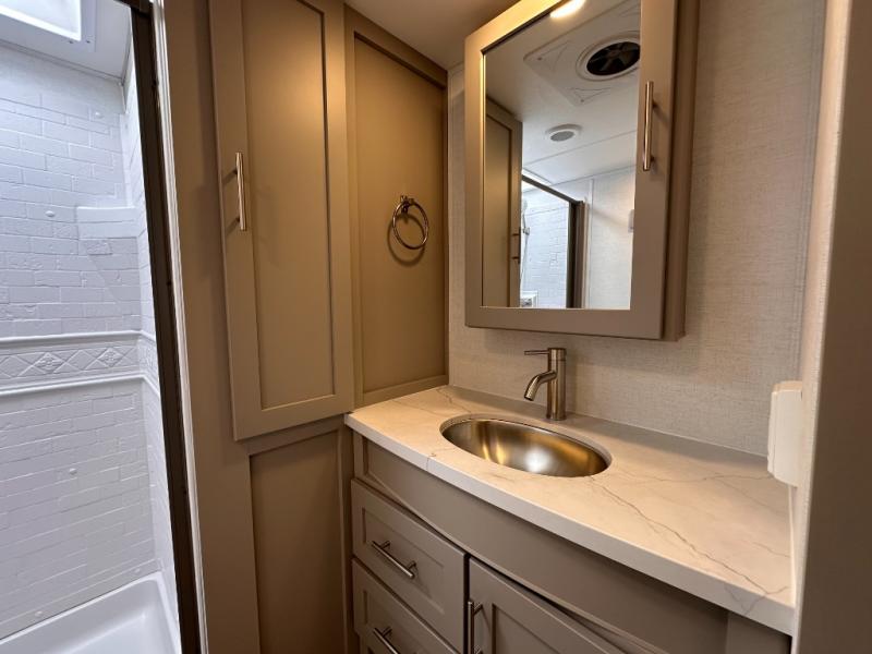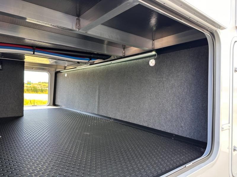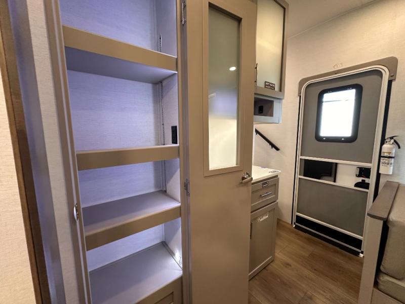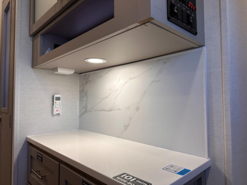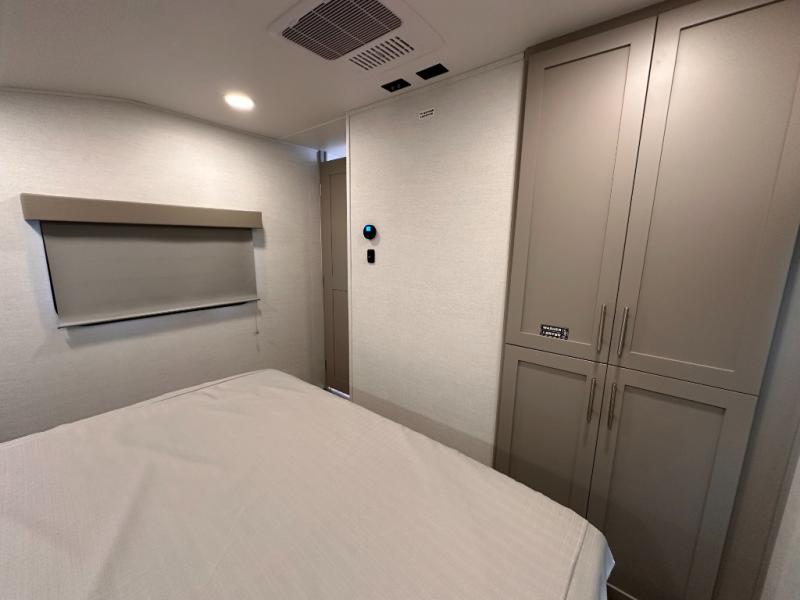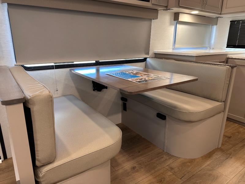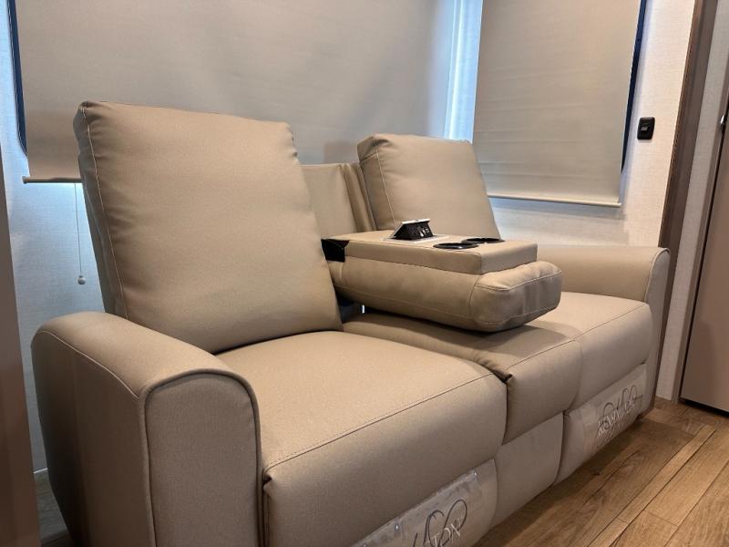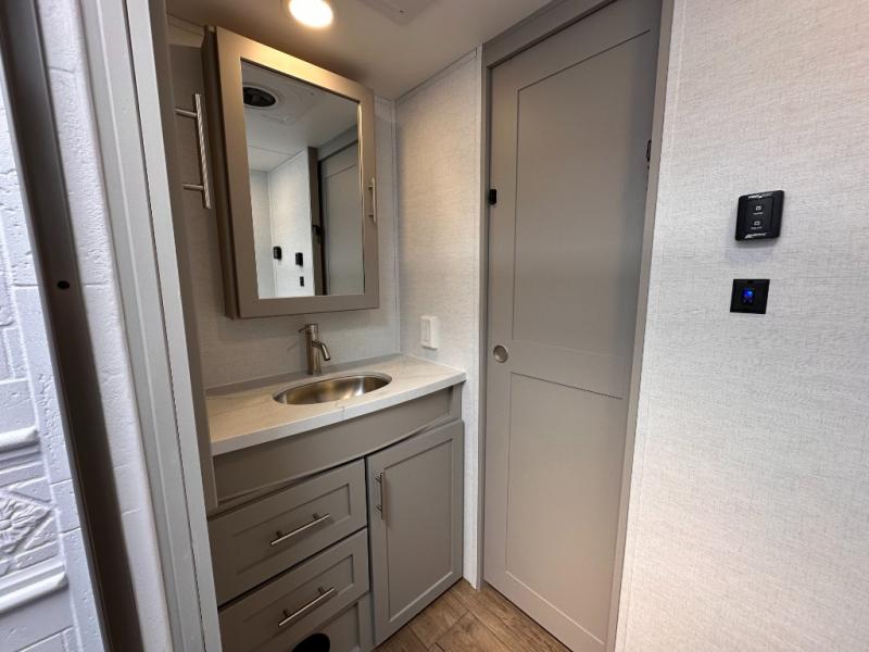 A benchmark chassis creates a space saver upper deck with each one of these Avenue All-Access fifth wheels by Alliance RV! The 101 in. wide-body construction gives you more room to walk around and the flush slide out floors throughout prevent any tripping. There are Azdel composite sidewalls inside and out, and a seamless fully walkable PVC roof for extreme durability and zero maintenance. You are sure to love no carpet throughout making each Avenue All-Access easy to clean and allergen free, not to mention pet friendly. You can maximize your space throughout with innovative storage solutions like the hidden storage behind the TV, inside the end tables, ottoman, and dinette chairs. These units also include the OTG Solar Package with a 200 watt solar panel, 15 amp MPPT charger, multiple outlets, and more to keep you powered up!