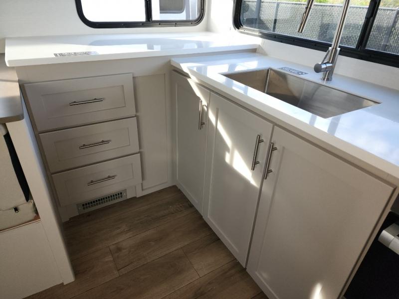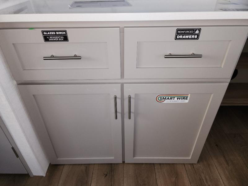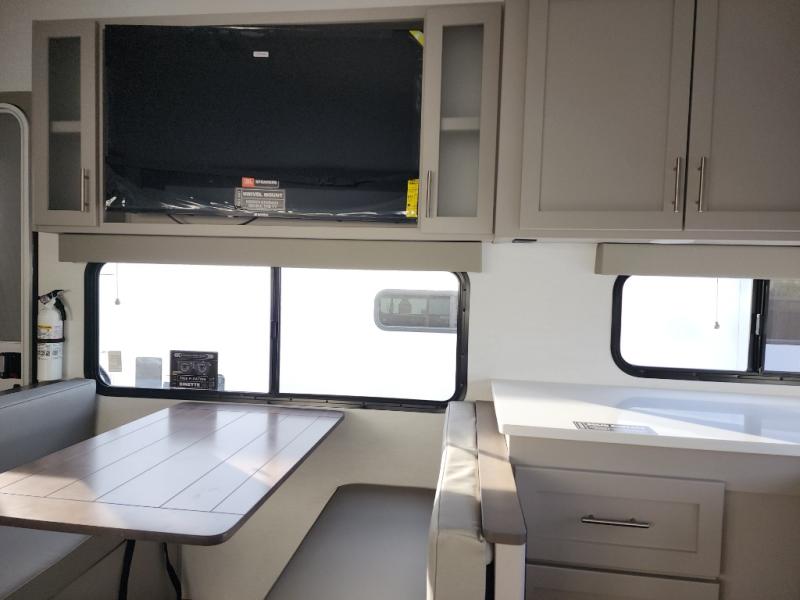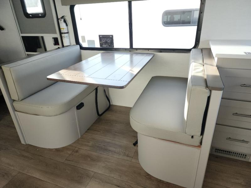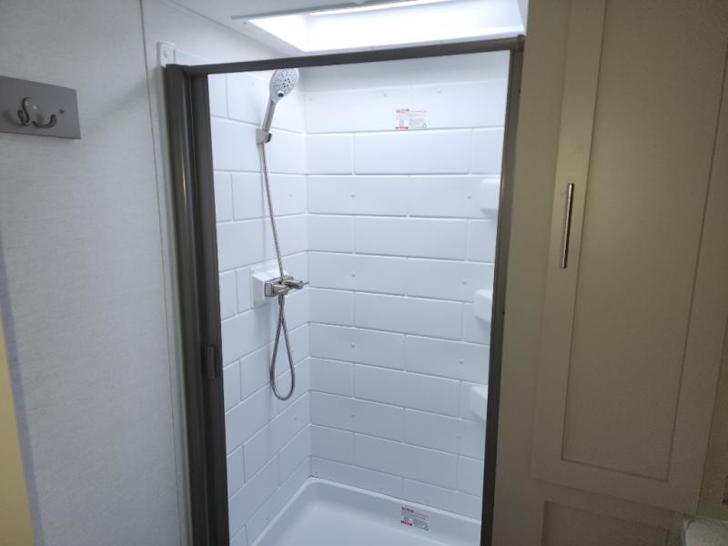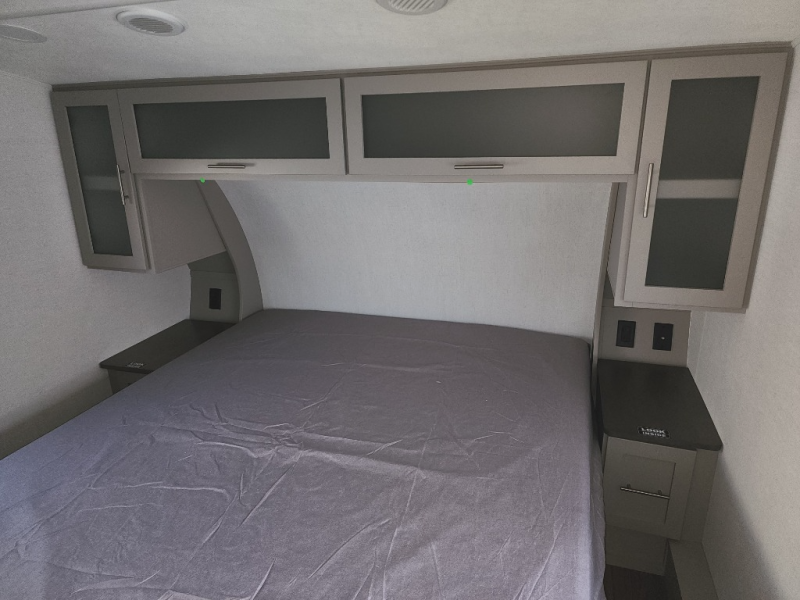 A benchmark chassis creates a space saver upper deck with each one of these Avenue All-Access fifth wheels by Alliance RV! The 101 in. wide-body construction gives you more room to walk around and the flush slide out floors throughout prevent any tripping. There are Azdel composite sidewalls inside and out, and a seamless fully walkable PVC roof for extreme durability and zero maintenance. You are sure to love no carpet throughout making each Avenue All-Access easy to clean and allergen free, not to mention pet friendly. You can maximize your space throughout with innovative storage solutions like the hidden storage behind the TV, inside the end tables, ottoman, and dinette chairs. These units also include the OTG Solar Package with a 200 watt solar panel, 15 amp MPPT charger, multiple outlets, and more to keep you powered up!