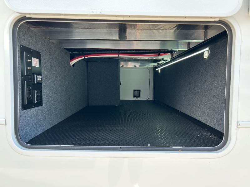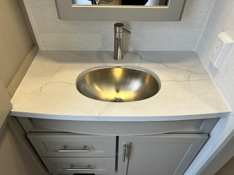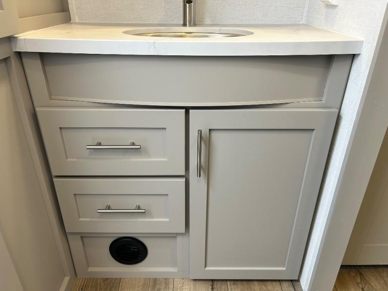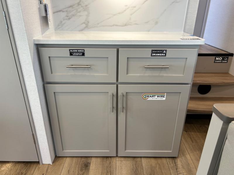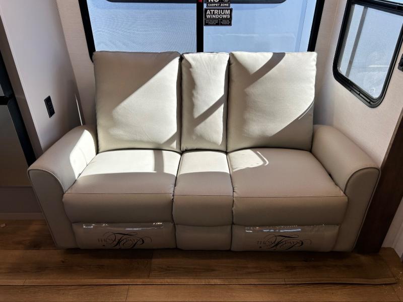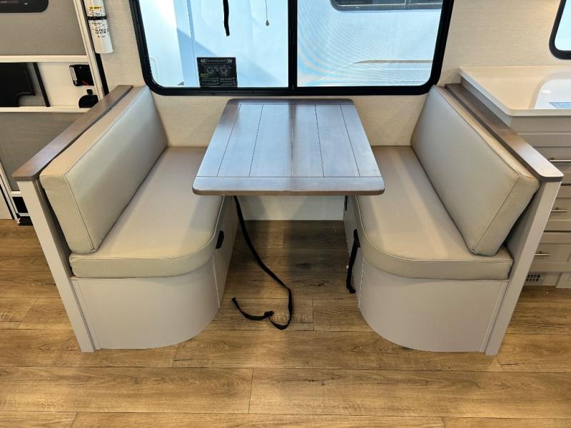 A benchmark chassis creates a space saver upper deck with each one of these Avenue All-Access fifth wheels by Alliance RV! The 101 in. wide-body construction gives you more room to walk around and the flush slide out floors throughout prevent any tripping. There are Azdel composite sidewalls inside and out, and a seamless fully walkable PVC roof for extreme durability and zero maintenance. You are sure to love no carpet throughout making each Avenue All-Access easy to clean and allergen free, not to mention pet friendly. You can maximize your space throughout with innovative storage solutions like the hidden storage behind the TV, inside the end tables, ottoman, and dinette chairs. These units also include the OTG Solar Package with a 200 watt solar panel, 15 amp MPPT charger, multiple outlets, and more to keep you powered up!