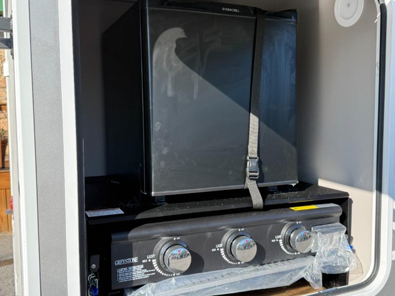 Outdoor Griddle & Refrigerator (on some dealer models): Great for campsite cooking.