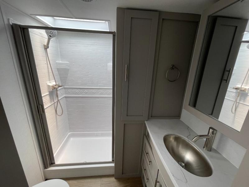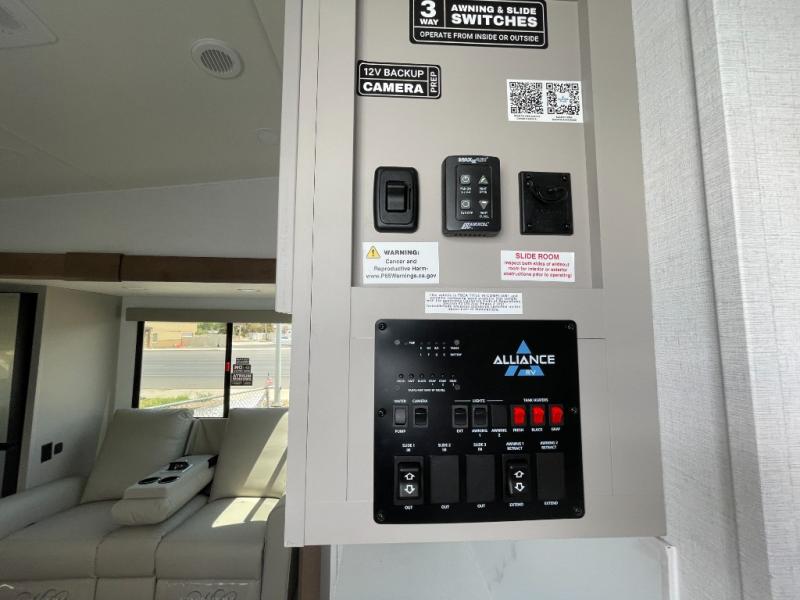 A benchmark chassis creates a space saver upper deck with each one of these Avenue All-Access fifth wheels by Alliance RV! The 101 in. wide-body construction gives you more room to walk around and the flush slide out floors throughout prevent any tripping. There are composite sidewalls inside and out, and PVC roof for extreme durability. You are sure to love no carpet throughout making each Avenue All-Access easy to clean and allergen free, not to mention pet friendly. You can maximize your space throughout with innovative storage solutions like the hidden storage behind the TV, inside the end tables, ottoman, and dinette chairs. These units also include the OTG Solar Package with a 200 watt solar panel, 15 amp MPPT charger, multiple outlets, and more to keep you powered up!