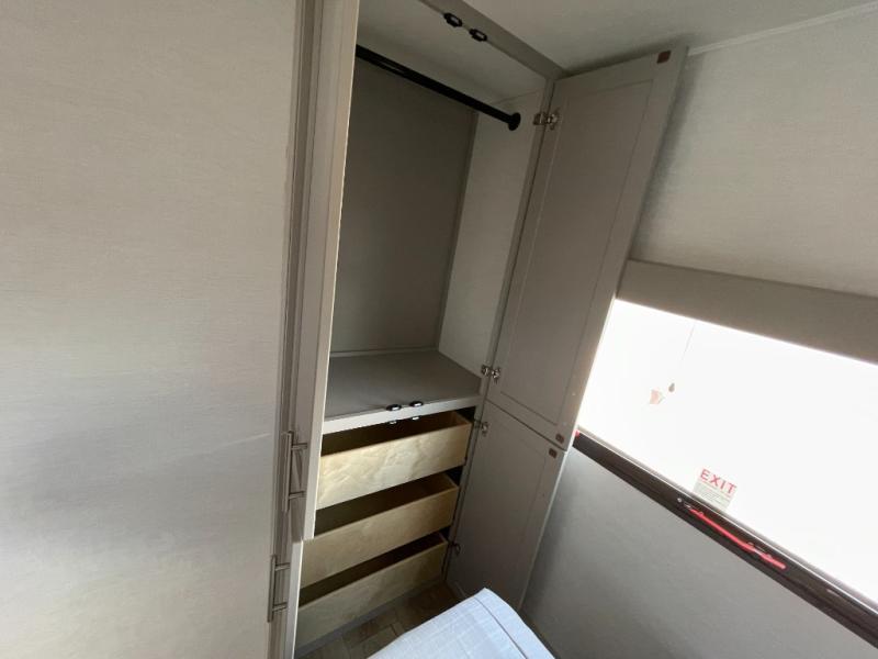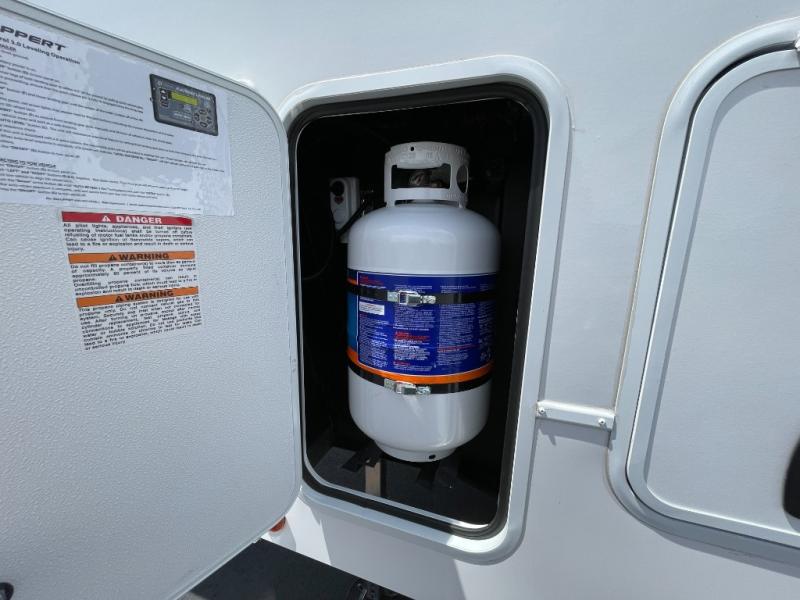 This fifth wheel is ready for adventure when you are! Once you arrive at the campground, you can put out the 16' awning, then start lunch on the exterior griddle. A booth dinette and theater sofa provide seating space inside, and there is a 50" Class HDTV to enjoy movies. The chef will also love the interior kitchen with its ample counter space, and there is plenty of storage with a hutch/pantry, second pantry, and 10 cu. ft. 12V refrigerator. Freshen up in the full bath before heading off to bed in the front private bedroom. Here, you'll find a queen bed, dual nightstands and overhead storage, plus a wardrobe with washer and dryer prep if you choose to add those appliances!