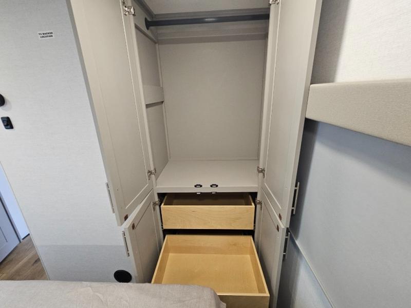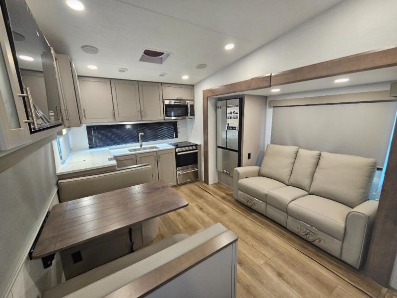 A benchmark chassis creates a space saver upper deck with each one of these Avenue All-Access fifth wheels by Alliance RV! The 101 in. wide-body construction gives you more room to walk around and the flush slide out floors throughout prevent any tripping. There are composite sidewalls inside and out, and PVC roof for extreme durability. You are sure to love no carpet throughout making each Avenue All-Access easy to clean and allergen free, not to mention pet friendly. You can maximize your space throughout with innovative storage solutions like the hidden storage behind the TV, inside the end tables, ottoman, and dinette chairs. These units also include the OTG Solar Package with a 200 watt solar panel, 15 amp MPPT charger, multiple outlets, and more to keep you powered up!