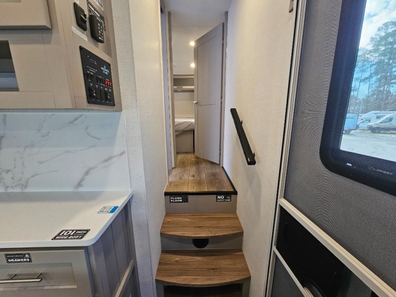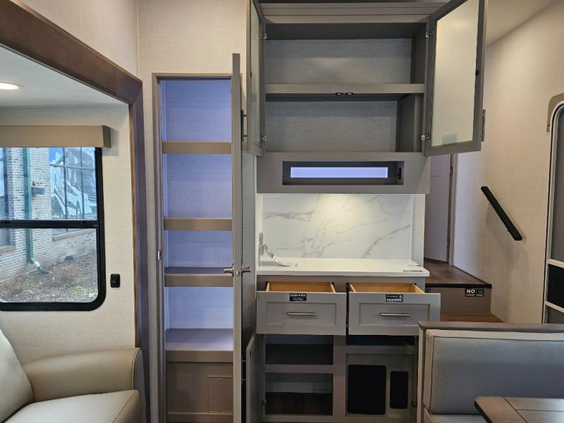 The Avenue All-Access 23ML offers a thoughtfully designed, compact fifth wheel that delivers residential comfort in a manageable size. With a rear kitchen, spacious full bath, and private front bedroom, this model is ideal for couples or solo travelers who want convenience, style, and functionality.