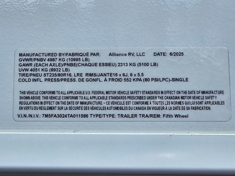 New 2026 Alliance RV Avenue All-Access 25RL Fifth Wheel