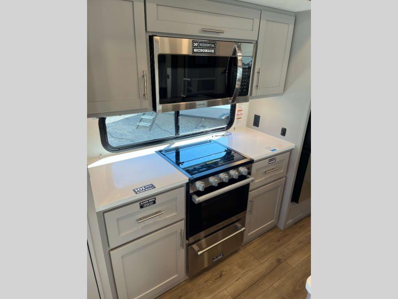 - "INDEPENDENCE 18K A/C, 35K BTU Furnace, 10 cu ft 12V Refrigerator, Walkable Roof w/ Seamless PVC Covering, Flush Floor Kitchen Slide, 30"" Over The Range Microwave, Large Residential Shower, Commercial Grade Vinyl Flooring (No Carpet), Residential Cabinet Doors, Hidden Hinges, Porcelain Toilet w/ Foot Flush, Roller Shades Throughout, Smart TV w/ Swing Arm in Living, Residential LED Ceiling Lights w/ Dimmer Switch, Hardwood Cabinet Doors and Drawers, No In-Floor Heat Vents (Main Floor), Mylar Reinforced Exterior Seals, Double Insulated Laminated Rear Wall, Painted Fiberglass Front Cap, Solid Surface Kitchen Countertops, LP Quick Connect, Solid Triple Entry Steps PERFORMANCE RUNNING GEAR 16"" GoodYear Tires w/ Aluminum Rims, Spare Tire and Carrier, 101"" Wide-Body Benchmark Chassis Platform w/ Flush Floor Upper Deck, MorRyde CRE3000 Suspension System, 4-Point Electric Leveling, 2"" Rear Receiver Hitch READY CONNECT Color Coded and Numbered Wiring, Shut off Valves at Major Plumbing Locations, Slide Topper Prep, Backup Camera Prep, Lithium Battery Ready, Starlink Prep, Satellite Prep, 50 AMP Power w/ Detachable Cord, Safety First Package (Smoke Detector/LP Alarm/Carbon Monoxide Alarm), Bluetooth Speaker and App Controls, Powder Coated Heavy Duty Rear Ladder, Universal All-In-One Docking Station"