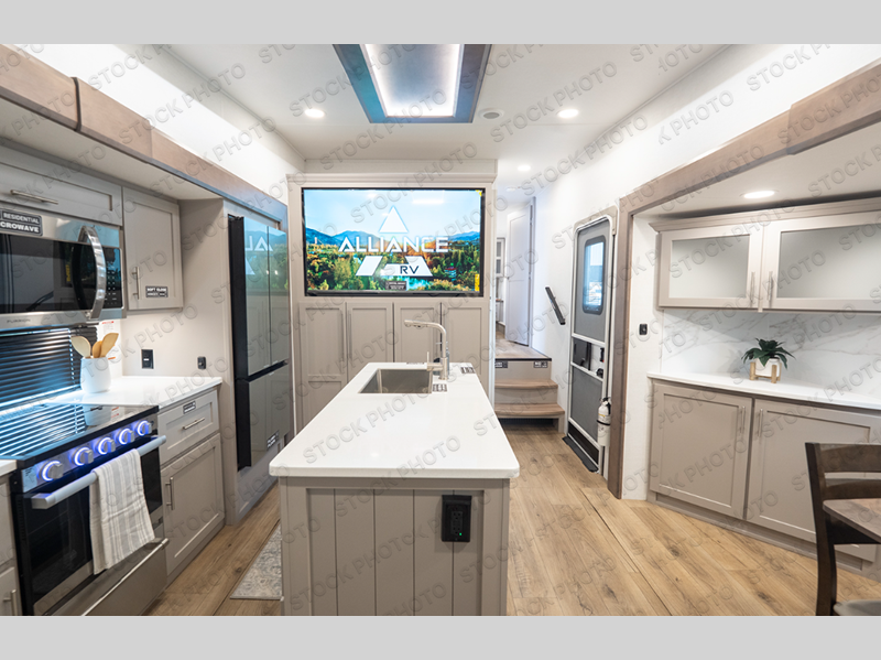 A benchmark chassis creates a space saver upper deck with each one of these Avenue All-Access fifth wheels by Alliance RV! The 101 in. wide-body construction gives you more room to walk around and the flush slide out floors throughout prevent any tripping. There are composite sidewalls inside and out, and PVC roof for extreme durability. You are sure to love no carpet throughout making each Avenue All-Access easy to clean and allergen free, not to mention pet friendly. You can maximize your space throughout with innovative storage solutions like the hidden storage behind the TV, inside the end tables, ottoman, and dinette chairs. These units also include the OTG Solar Package with a 200 watt solar panel, 15 amp MPPT charger, multiple outlets, and more to keep you powered up!