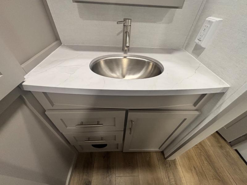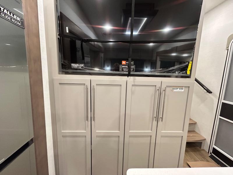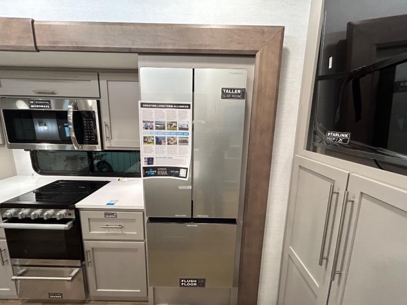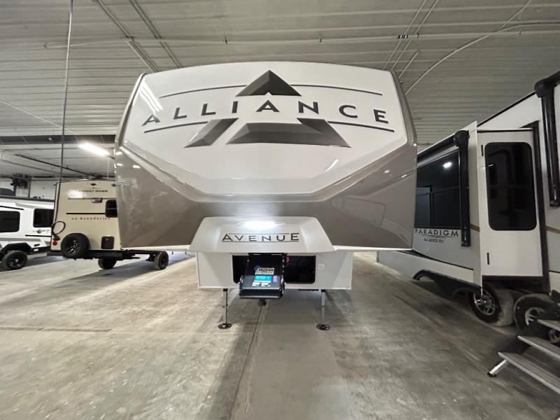 A benchmark chassis creates a space saver upper deck with each one of these Avenue All-Access fifth wheels by Alliance RV! The 101 in. wide-body construction gives you more room to walk around and the flush slide out floors throughout prevent any tripping. There are composite sidewalls inside and out, and PVC roof for extreme durability. You are sure to love no carpet throughout making each Avenue All-Access easy to clean and allergen free, not to mention pet friendly. You can maximize your space throughout with innovative storage solutions like the hidden storage behind the TV, inside the end tables, ottoman, and dinette chairs. These units also include the OTG Solar Package with a 200 watt solar panel, 15 amp MPPT charger, multiple outlets, and more to keep you powered up!