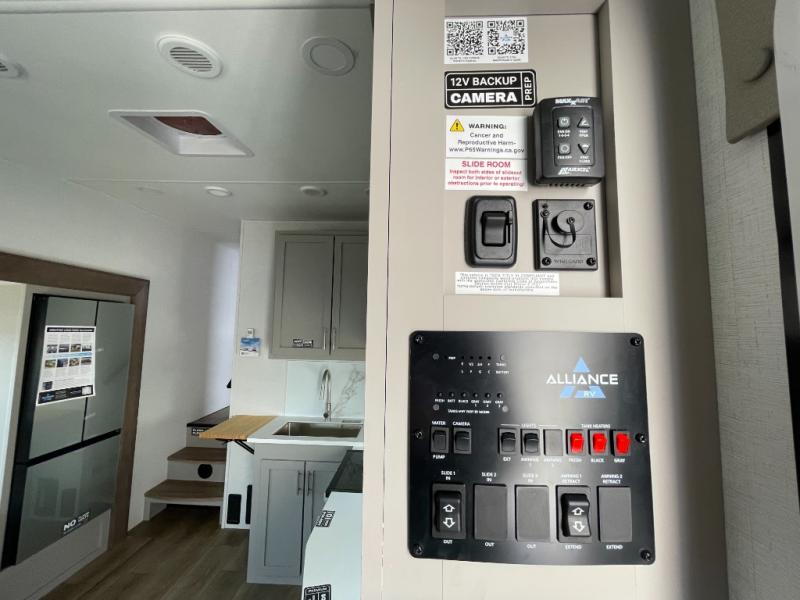 A benchmark chassis creates a space saver upper deck with each one of these Avenue All-Access fifth wheels by Alliance RV! The 101 in. wide-body construction gives you more room to walk around and the flush slide out floors throughout prevent any tripping. There are composite sidewalls inside and out, and PVC roof for extreme durability. You are sure to love no carpet throughout making each Avenue All-Access easy to clean and allergen free, not to mention pet friendly. You can maximize your space throughout with innovative storage solutions like the hidden storage behind the TV, inside the end tables, ottoman, and dinette chairs. These units also include the OTG Solar Package with a 200 watt solar panel, 15 amp MPPT charger, multiple outlets, and more to keep you powered up!