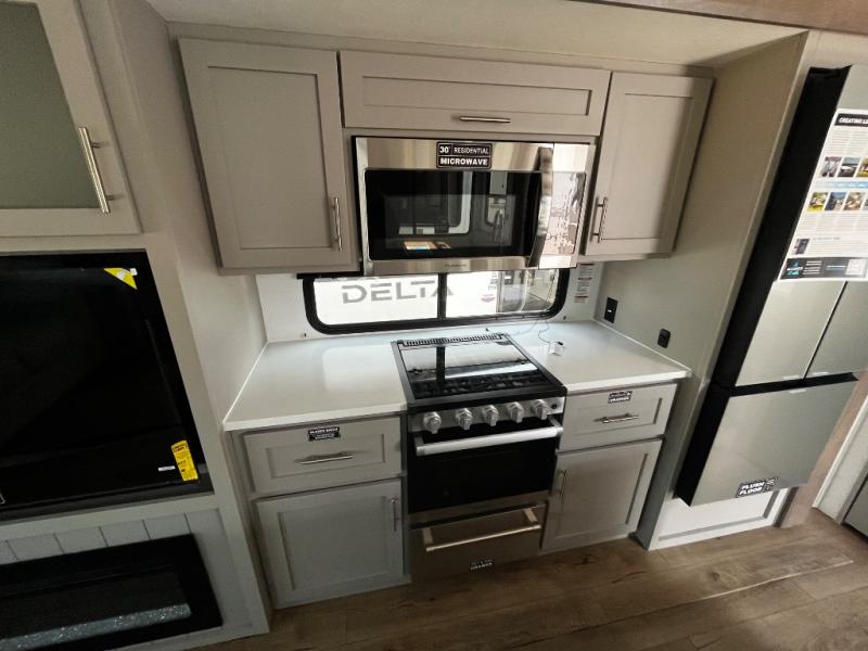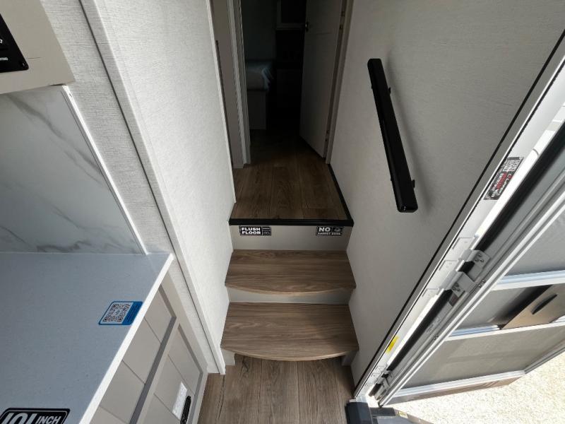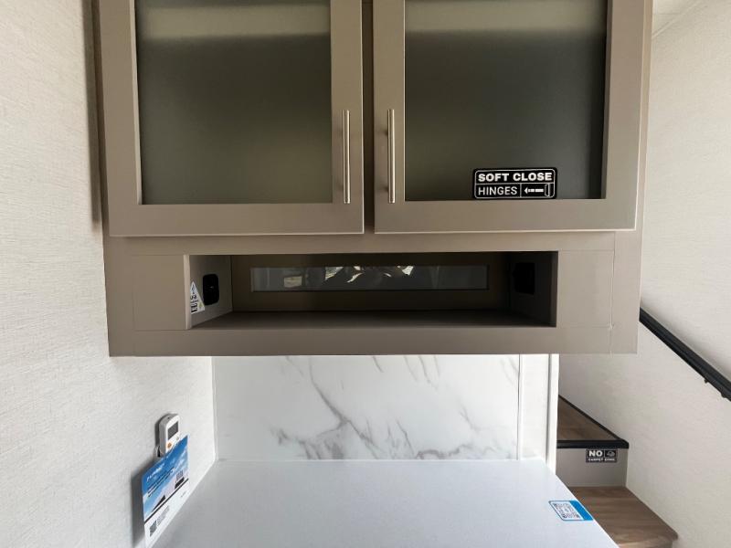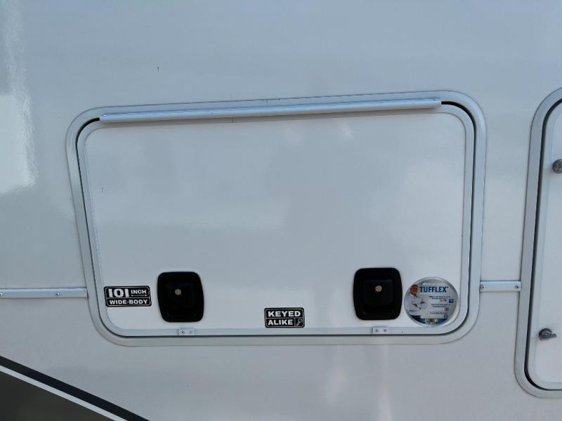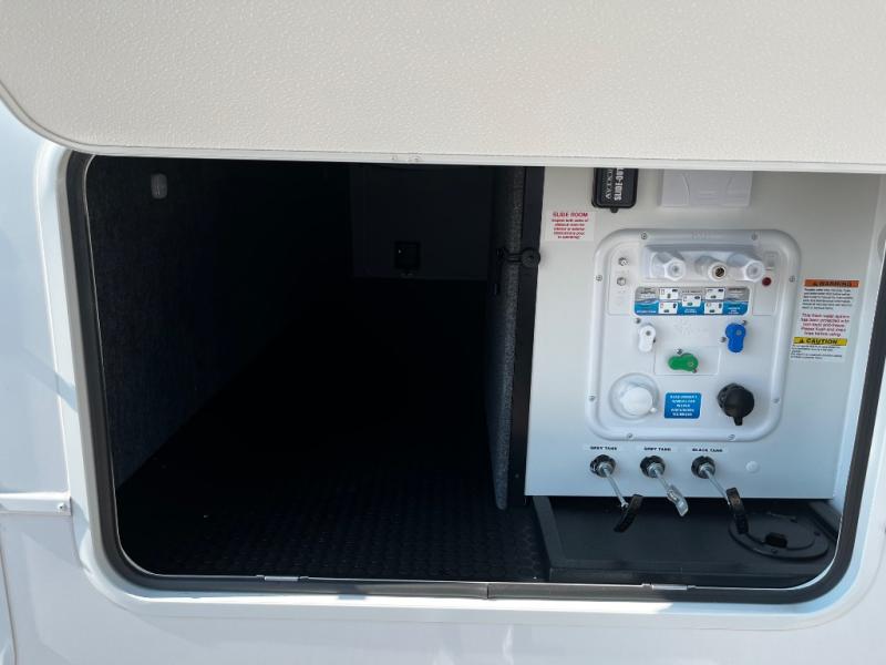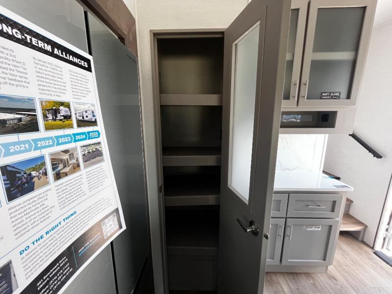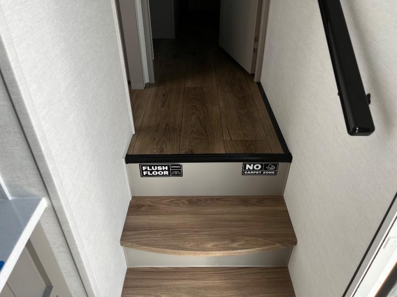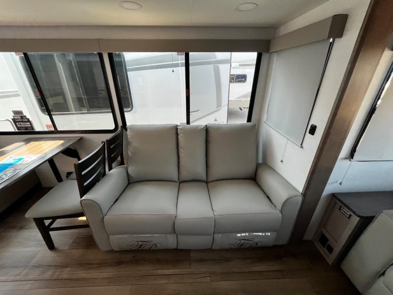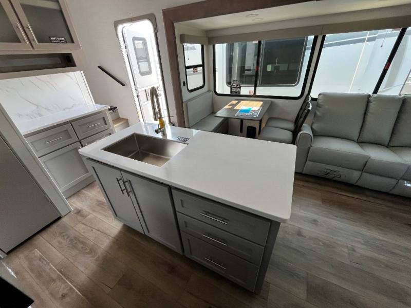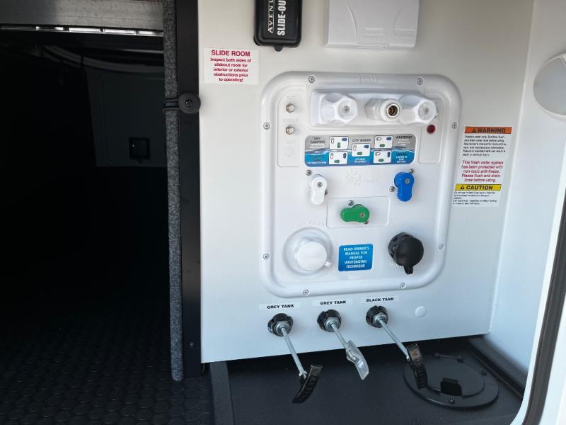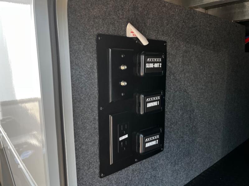 A benchmark chassis creates a space saver upper deck with each one of these Avenue All-Access fifth wheels by Alliance RV! The 101 in. wide-body construction gives you more room to walk around and the flush slide out floors throughout prevent any tripping. There are Azdel composite sidewalls inside and out, and a seamless fully walkable PVC roof for extreme durability and zero maintenance. You are sure to love no carpet throughout making each Avenue All-Access easy to clean and allergen free, not to mention pet friendly. You can maximize your space throughout with innovative storage solutions like the hidden storage behind the TV, inside the end tables, ottoman, and dinette chairs. These units also include the OTG Solar Package with a 200 watt solar panel, 15 amp MPPT charger, multiple outlets, and more to keep you powered up!