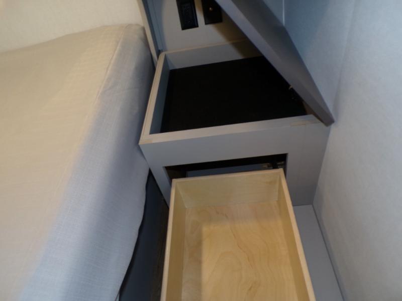 For the couple that enjoys adventures, this rear living coach has everything you need to travel comfortably and take along a couple of friends! The front private bedroom has a queen bed with nightstands on either side for your personal belongings, and a wardrobe to keep your clothes looking nice. Freshen up each morning in the full bathroom with a 30" x 36" shower, and grab a towel stored close by in the linen closet. Now that you're ready for the day, you can head to the kitchen and create a hearty breakfast with the full kitchen amenities. You will appreciate having a 10 cu. ft. 12V refrigerator and three burner cooktop, plus there is a center island with plenty of counter space and a sink to make food prep even easier. Spend your evenings in true relaxation in the dual recliner theater seats across from the swing mount 50" HDTV with hidden storage behind. You will also love the pantry and hutch in the kitchen area for storing all of your dishes and non-perishables. Dine at the floating table with two chairs along with a moveable ottoman featuring storage.