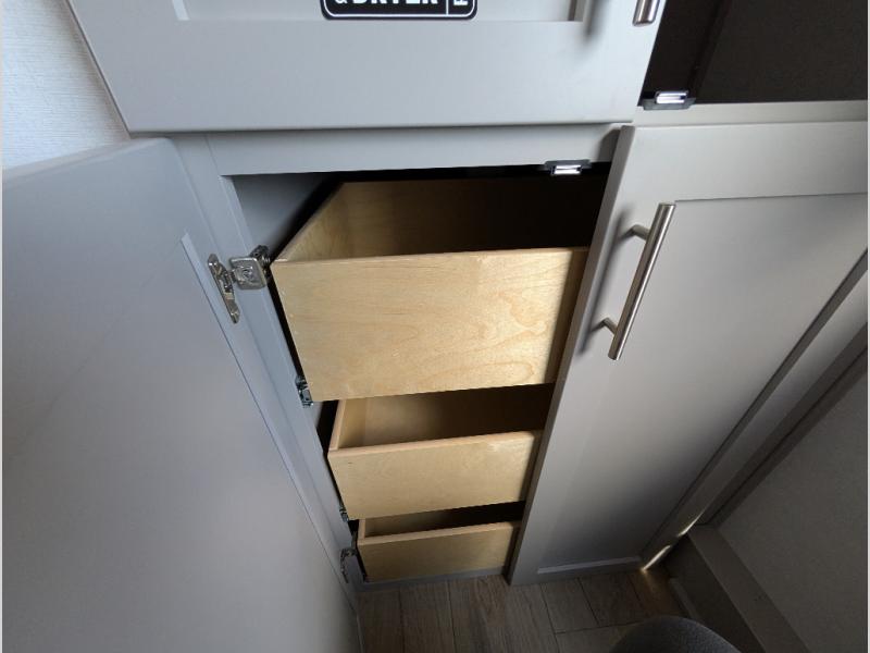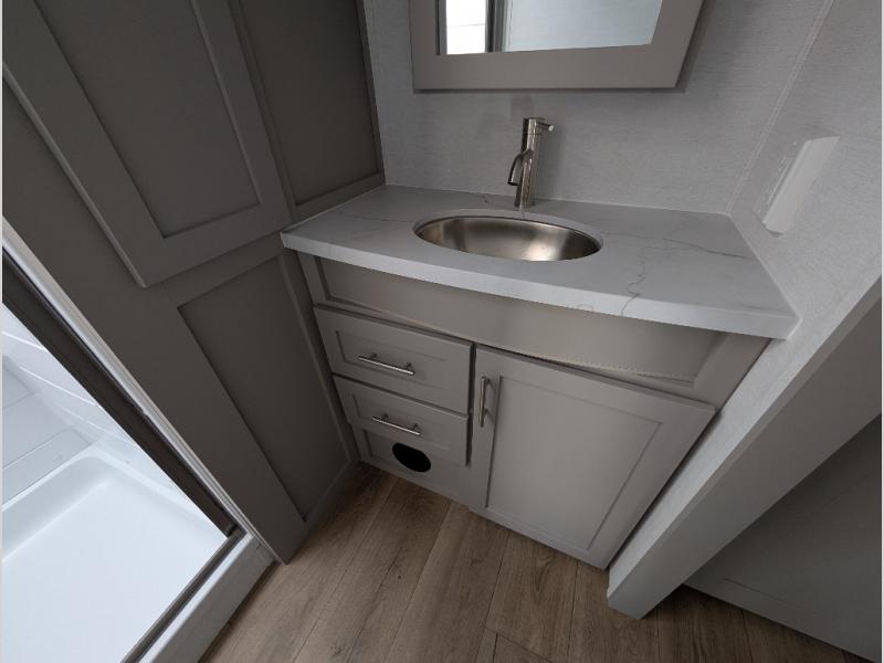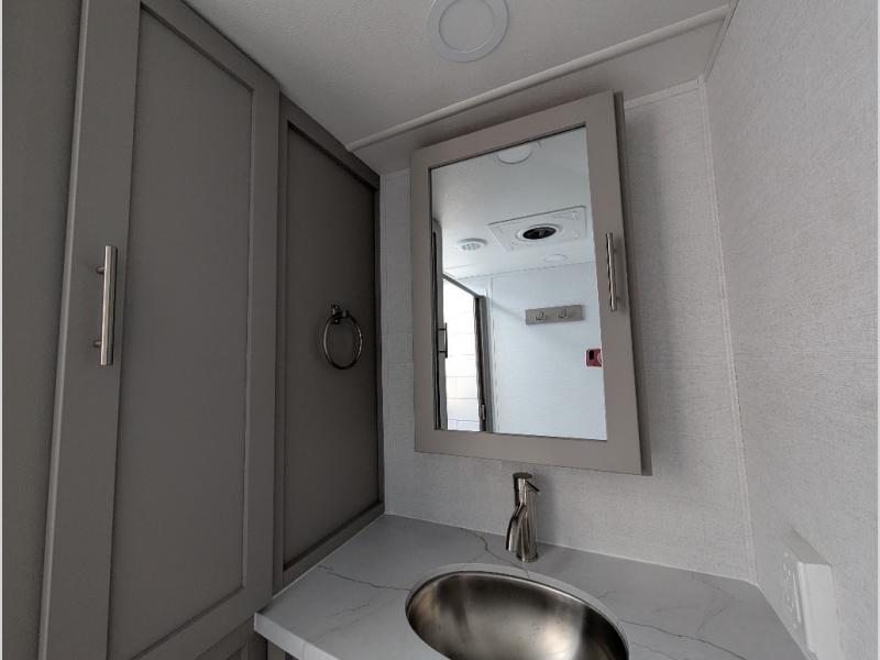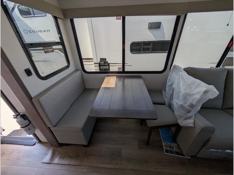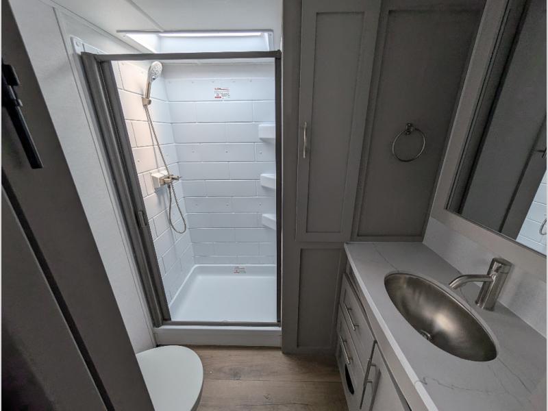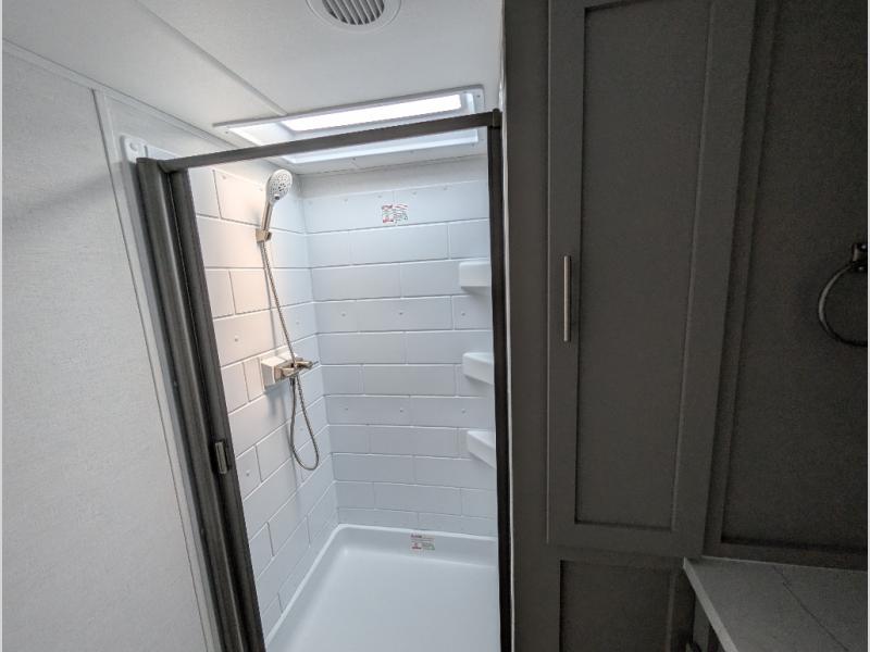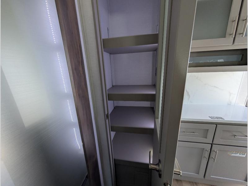 A benchmark chassis creates a space saver upper deck with each one of these Avenue All-Access fifth wheels by Alliance RV! The 101 in. wide-body construction gives you more room to walk around and the flush slide out floors throughout prevent any tripping. There are Azdel composite sidewalls inside and out, and a seamless fully walkable PVC roof for extreme durability and zero maintenance. You are sure to love no carpet throughout making each Avenue All-Access easy to clean and allergen free, not to mention pet friendly. You can maximize your space throughout with innovative storage solutions like the hidden storage behind the TV, inside the end tables, ottoman, and dinette chairs. These units also include the OTG Solar Package with a 200 watt solar panel, 15 amp MPPT charger, multiple outlets, and more to keep you powered up!