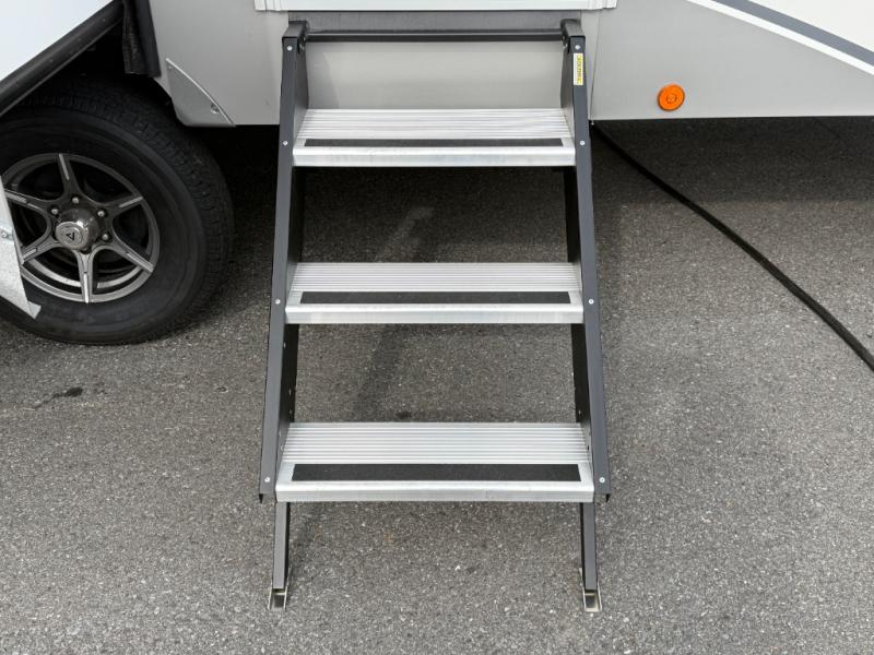 Solid step entry steps, atrium windows, blackout roller shades standard.