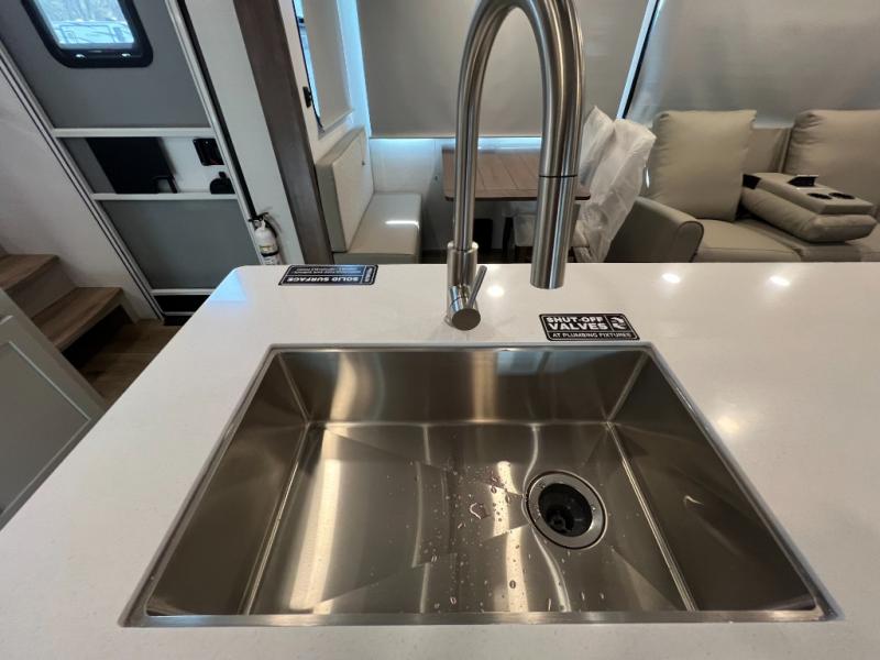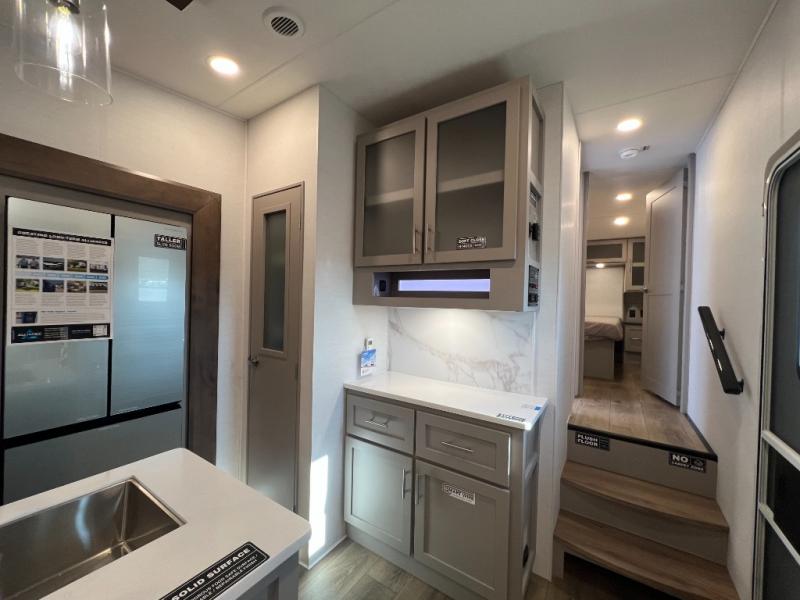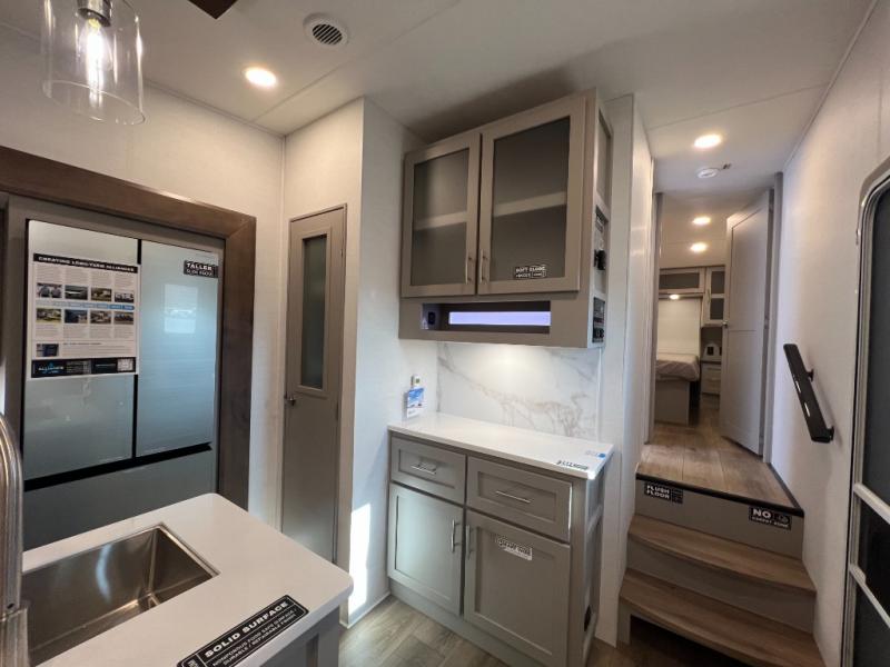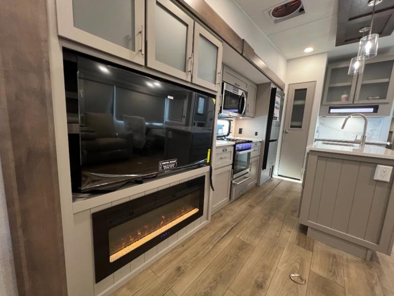 A benchmark chassis creates a space saver upper deck with each one of these Avenue All-Access fifth wheels by Alliance RV! The 101 in. wide-body construction gives you more room to walk around and the flush slide out floors throughout prevent any tripping. There are composite sidewalls inside and out, and PVC roof for extreme durability. You are sure to love no carpet throughout making each Avenue All-Access easy to clean and allergen free, not to mention pet friendly. You can maximize your space throughout with innovative storage solutions like the hidden storage behind the TV, inside the end tables, ottoman, and dinette chairs. These units also include the OTG Solar Package with a 200 watt solar panel, 15 amp MPPT charger, multiple outlets, and more to keep you powered up!