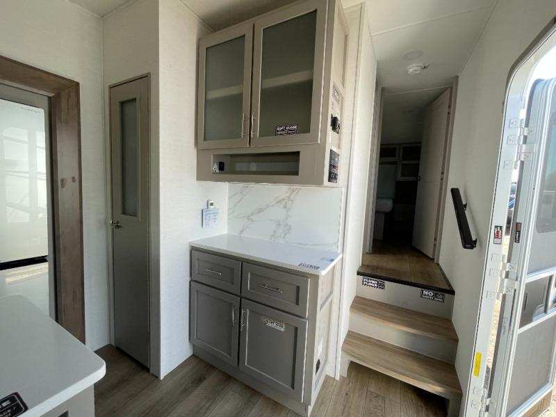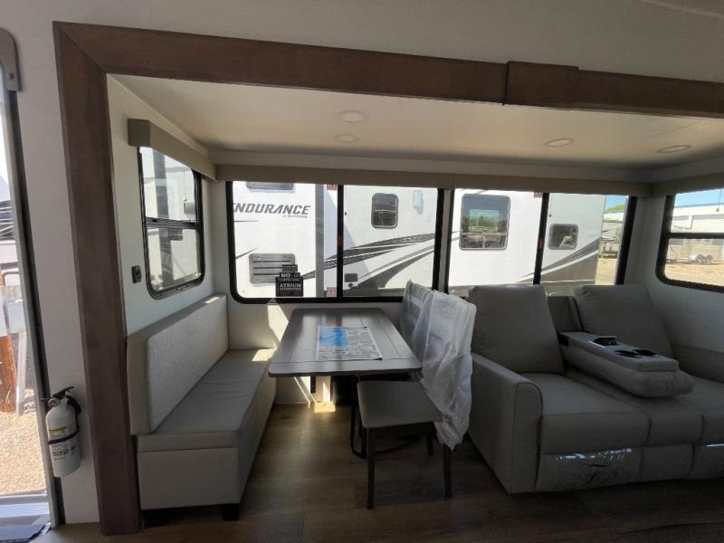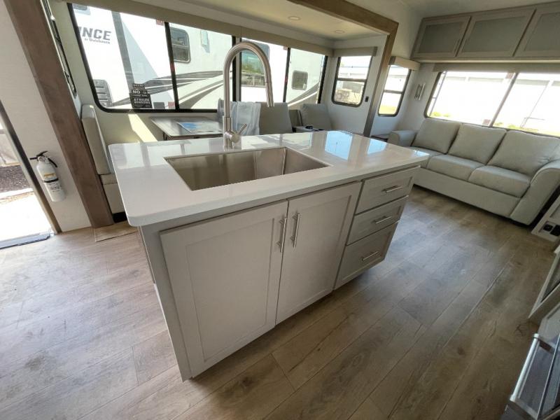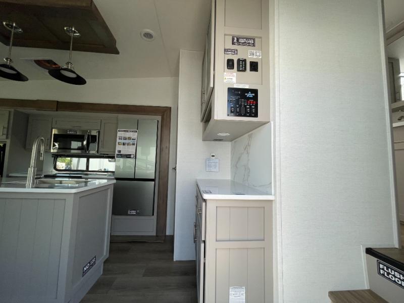 A benchmark chassis creates a space saver upper deck with each one of these Avenue All-Access fifth wheels by Alliance RV! The 101 in. wide-body construction gives you more room to walk around and the flush slide out floors throughout prevent any tripping. There are composite sidewalls inside and out, and PVC roof for extreme durability. You are sure to love no carpet throughout making each Avenue All-Access easy to clean and allergen free, not to mention pet friendly. You can maximize your space throughout with innovative storage solutions like the hidden storage behind the TV, inside the end tables, ottoman, and dinette chairs. These units also include the OTG Solar Package with a 200 watt solar panel, 15 amp MPPT charger, multiple outlets, and more to keep you powered up!