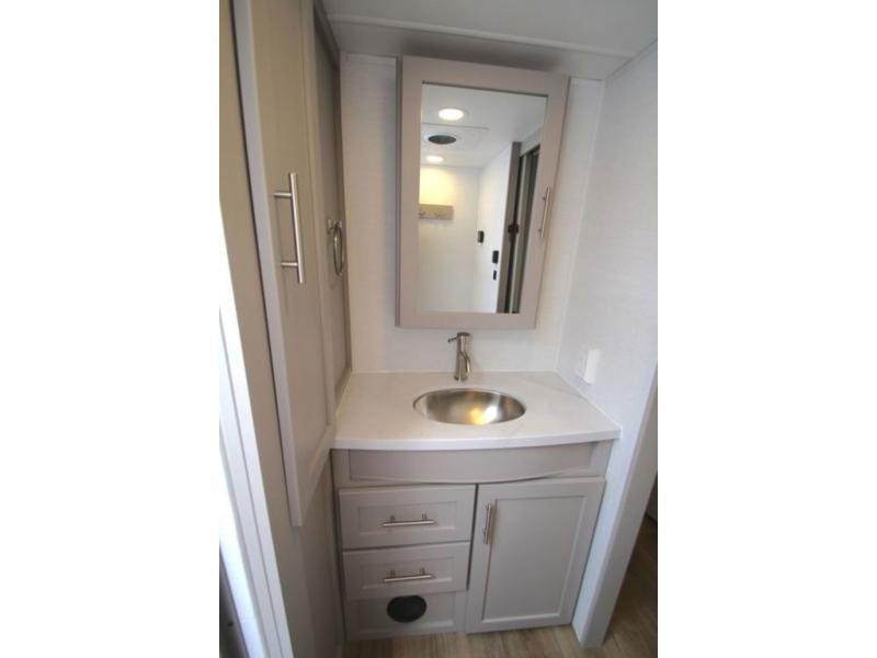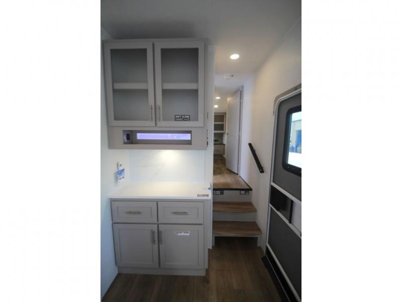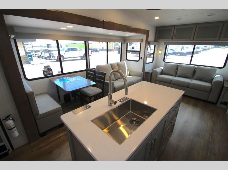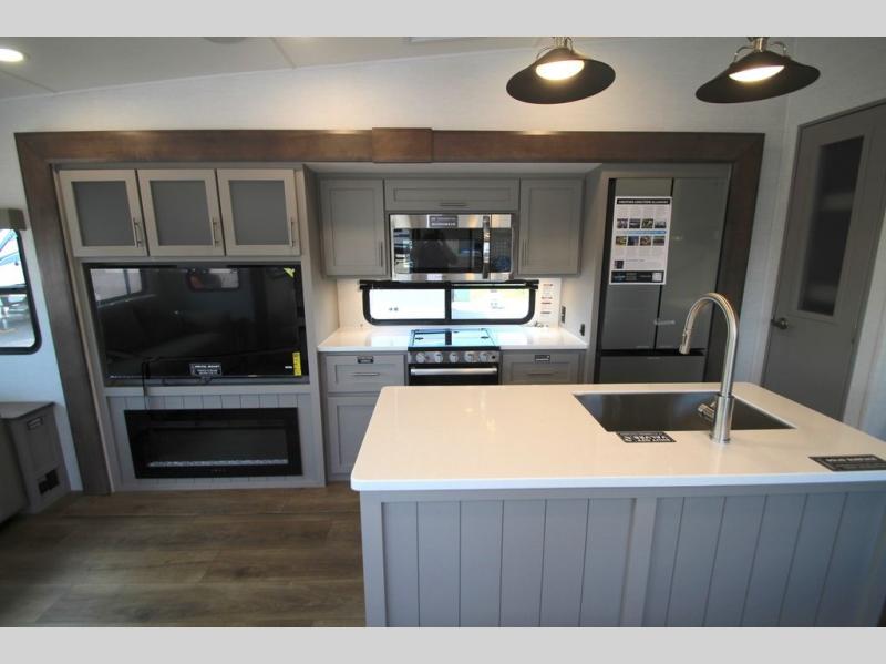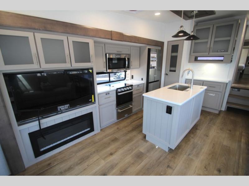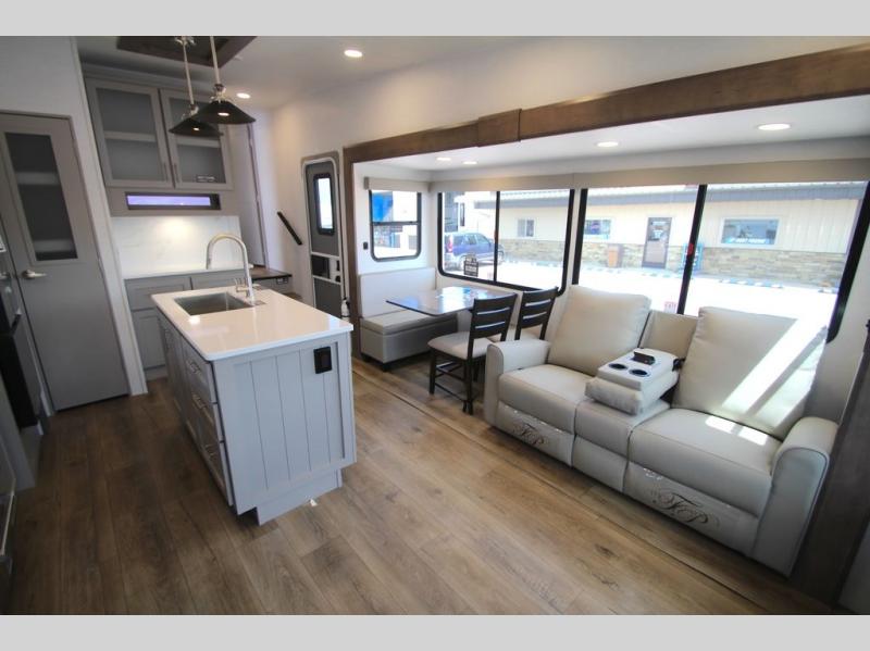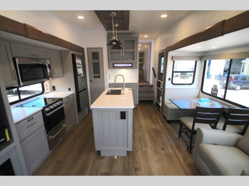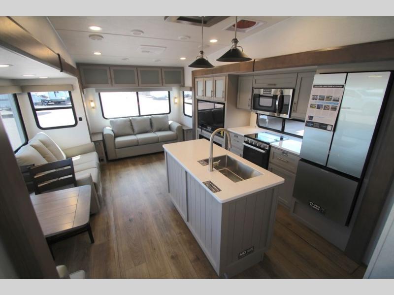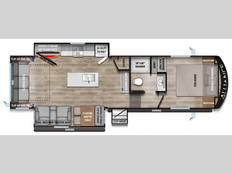 A benchmark chassis creates a space saver upper deck with each one of these Avenue All-Access fifth wheels by Alliance RV! The 101 in. wide-body construction gives you more room to walk around and the flush slide out floors throughout prevent any tripping. There are composite sidewalls inside and out, and PVC roof for extreme durability. You are sure to love no carpet throughout making each Avenue All-Access easy to clean and allergen free, not to mention pet friendly. You can maximize your space throughout with innovative storage solutions like the hidden storage behind the TV, inside the end tables, ottoman, and dinette chairs. These units also include the OTG Solar Package with a 200 watt solar panel, 15 amp MPPT charger, multiple outlets, and more to keep you powered up!