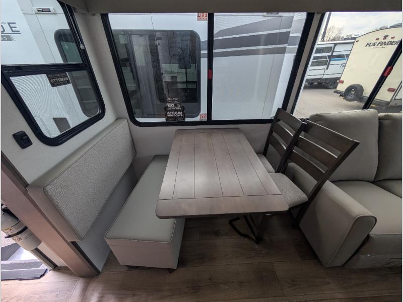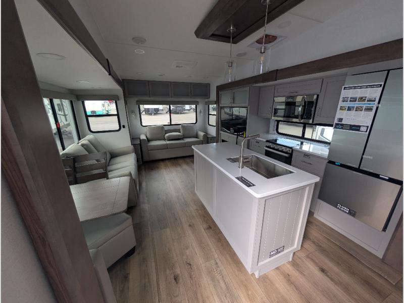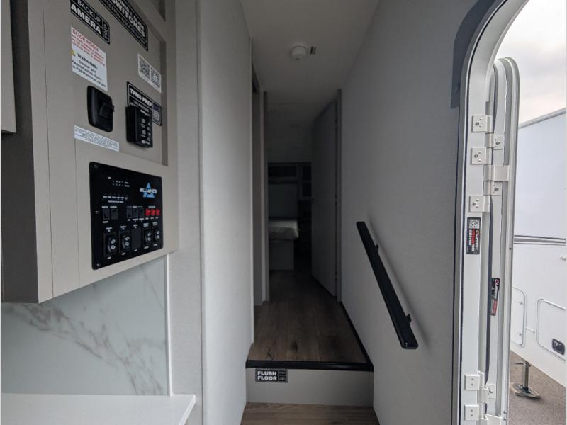 A benchmark chassis creates a space saver upper deck with each one of these Avenue All-Access fifth wheels by Alliance RV! The 101 in. wide-body construction gives you more room to walk around and the flush slide out floors throughout prevent any tripping. There are composite sidewalls inside and out, and PVC roof for extreme durability. You are sure to love no carpet throughout making each Avenue All-Access easy to clean and allergen free, not to mention pet friendly. You can maximize your space throughout with innovative storage solutions like the hidden storage behind the TV, inside the end tables, ottoman, and dinette chairs. These units also include the OTG Solar Package with a 200 watt solar panel, 15 amp MPPT charger, multiple outlets, and more to keep you powered up!