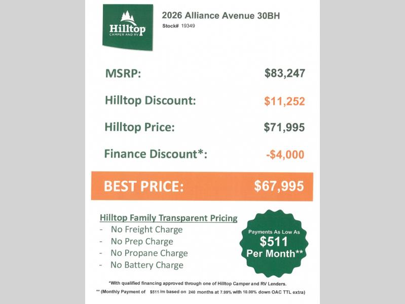 New 2026 Alliance RV Avenue All-Access 30BH Fifth Wheel