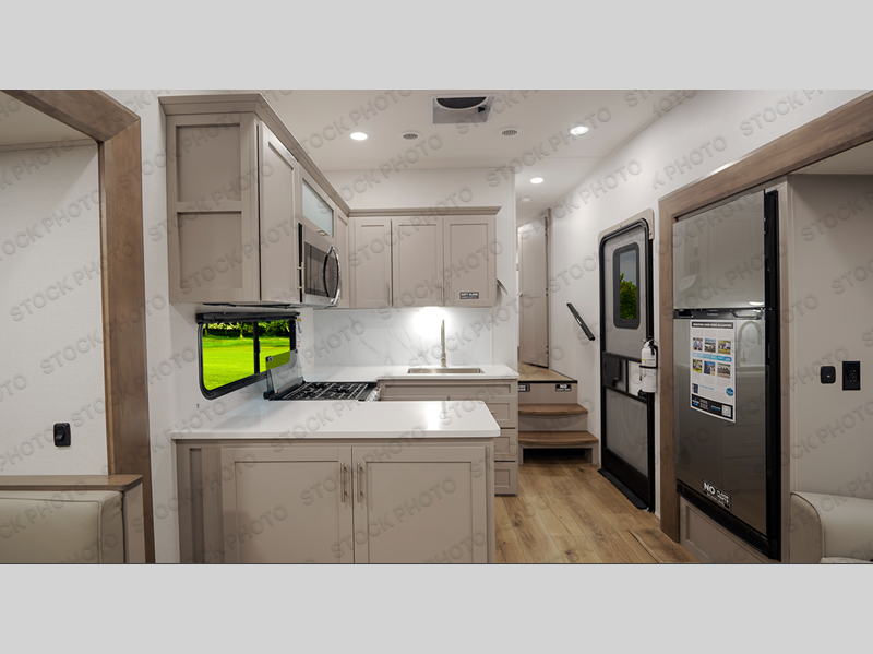 A benchmark chassis creates a space saver upper deck with each one of these Avenue All-Access fifth wheels by Alliance RV! The 101 in. wide-body construction gives you more room to walk around and the flush slide out floors throughout prevent any tripping. There are Azdel composite sidewalls inside and out, and a seamless fully walkable PVC roof for extreme durability and zero maintenance. You are sure to love no carpet throughout making each Avenue All-Access easy to clean and allergen free, not to mention pet friendly. You can maximize your space throughout with innovative storage solutions like the hidden storage behind the TV, inside the end tables, ottoman, and dinette chairs. These units also include the OTG Solar Package with a 200 watt solar panel, 15 amp MPPT charger, multiple outlets, and more to keep you powered up!