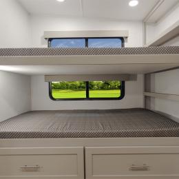 With a private queen bedroom, double-over-double bunks, and a spacious living area, this fifth wheel blends comfort, durability, and modern design—perfect for making memories on the road.