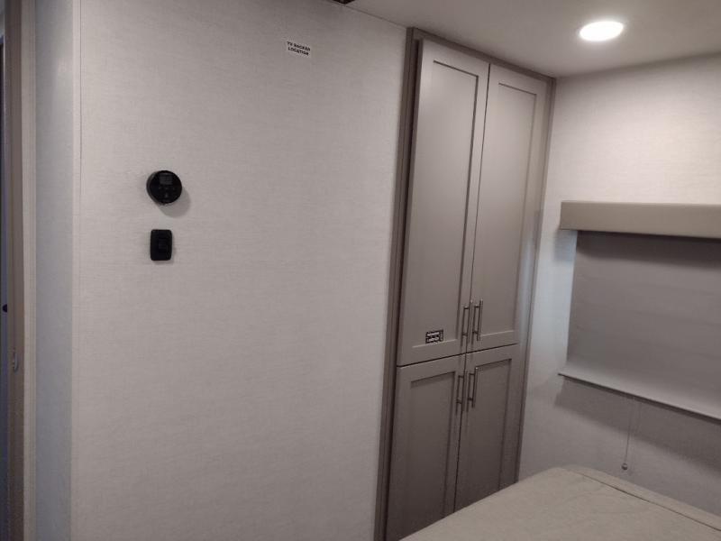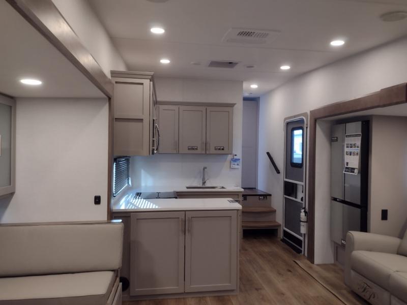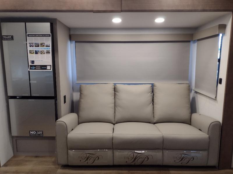 A benchmark chassis creates a space saver upper deck with each one of these Avenue All-Access fifth wheels by Alliance RV! The 101 in. wide-body construction gives you more room to walk around and the flush slide out floors throughout prevent any tripping. There are composite sidewalls inside and out, and a seamless fully walkable PVC roof for extreme durability and zero maintenance. You are sure to love no carpet throughout making each Avenue All-Access easy to clean and allergen free, not to mention pet friendly. You can maximize your space throughout with innovative storage solutions like the hidden storage behind the TV, inside the end tables, ottoman, and dinette chairs. These units also include the OTG Solar Package with a 200 watt solar panel, 15 amp MPPT charger, multiple outlets, and more to keep you powered up!