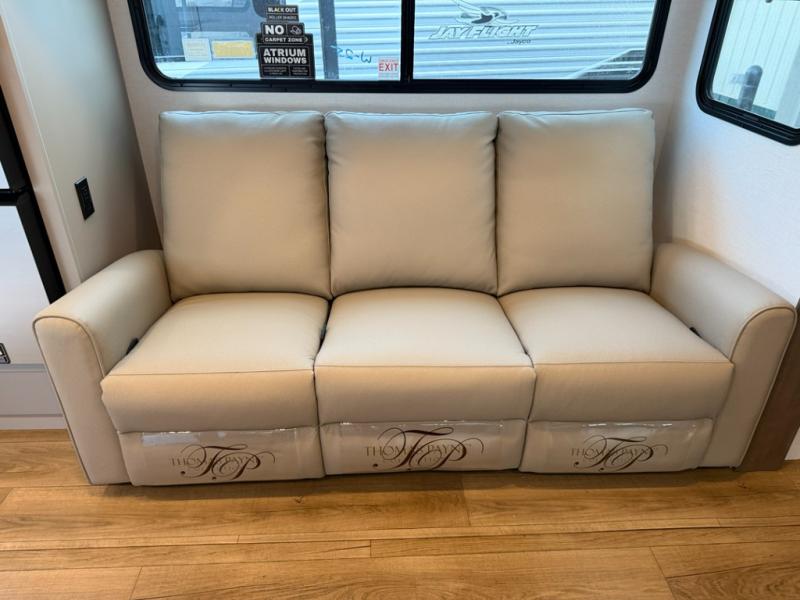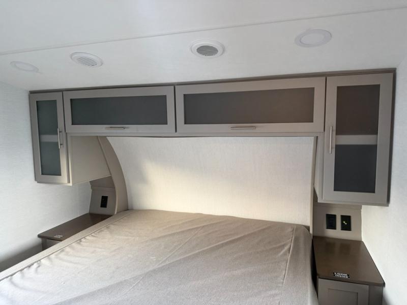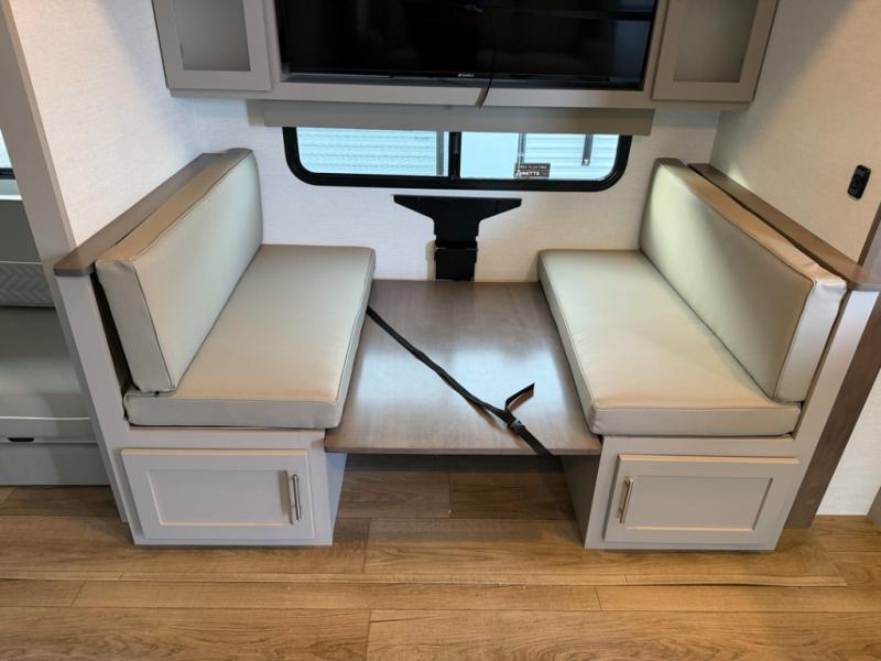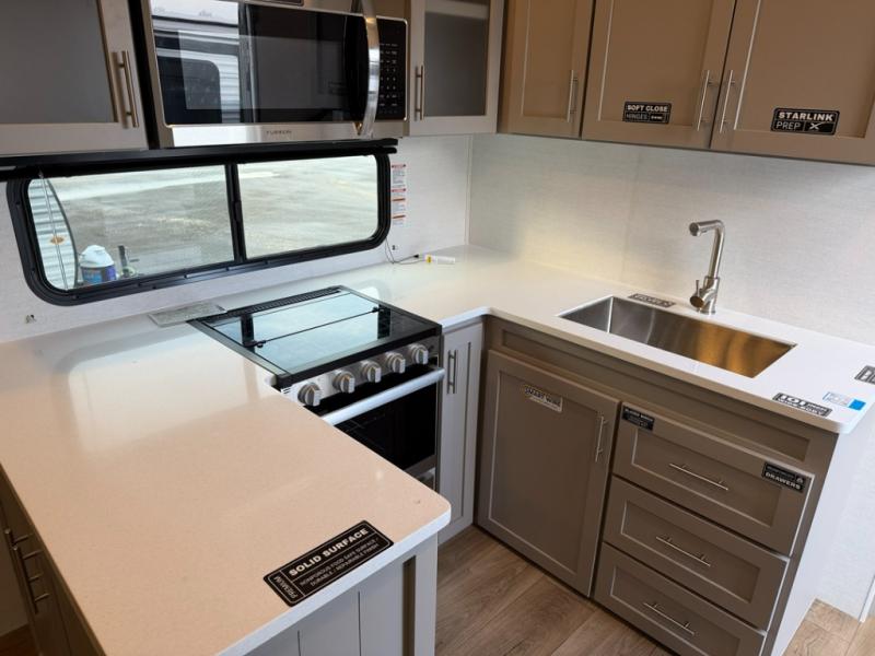 A benchmark chassis creates a space saver upper deck with each one of these Avenue All-Access fifth wheels by Alliance RV! The 101 in. wide-body construction gives you more room to walk around and the flush slide out floors throughout prevent any tripping. There are composite sidewalls inside and out, and a seamless fully walkable PVC roof for extreme durability and zero maintenance. You are sure to love no carpet throughout making each Avenue All-Access easy to clean and allergen free, not to mention pet friendly. You can maximize your space throughout with innovative storage solutions like the hidden storage behind the TV, inside the end tables, ottoman, and dinette chairs. These units also include the OTG Solar Package with a 200 watt solar panel, 15 amp MPPT charger, multiple outlets, and more to keep you powered up!