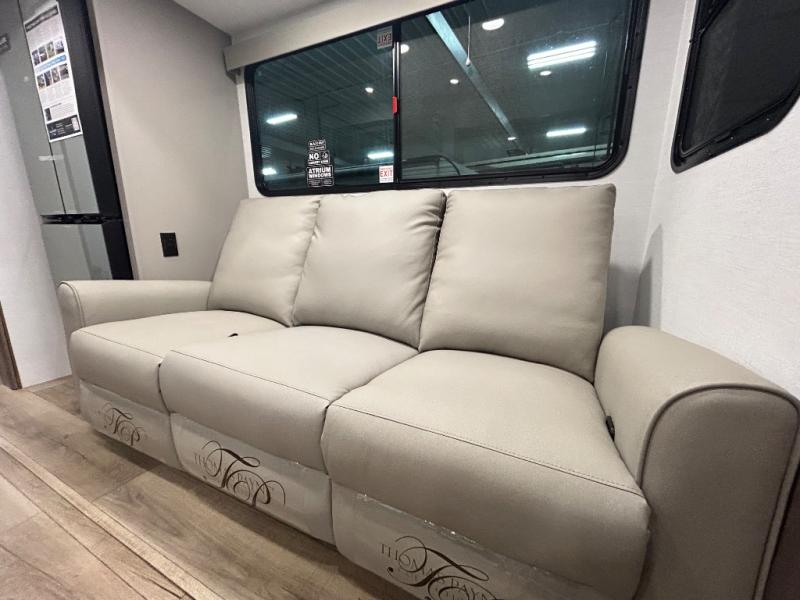 A benchmark chassis creates a space saver upper deck with each one of these Avenue All-Access fifth wheels by Alliance RV! The 101 in. wide-body construction gives you more room to walk around and the flush slide out floors throughout prevent any tripping. There are composite sidewalls inside and out, and a seamless fully walkable PVC roof for extreme durability and zero maintenance. You are sure to love no carpet throughout making each Avenue All-Access easy to clean and allergen free, not to mention pet friendly. You can maximize your space throughout with innovative storage solutions like the hidden storage behind the TV, inside the end tables, ottoman, and dinette chairs. These units also include the OTG Solar Package with a 200 watt solar panel, 15 amp MPPT charger, multiple outlets, and more to keep you powered up!