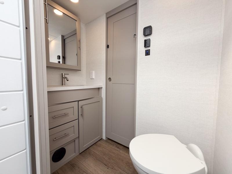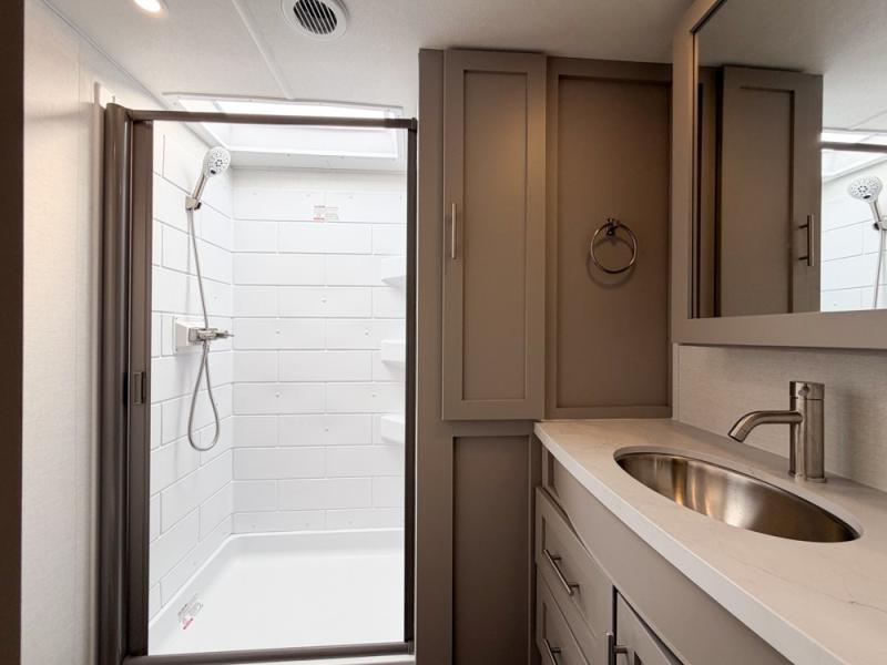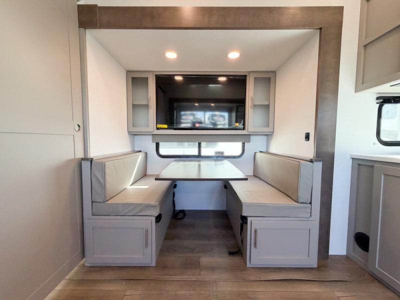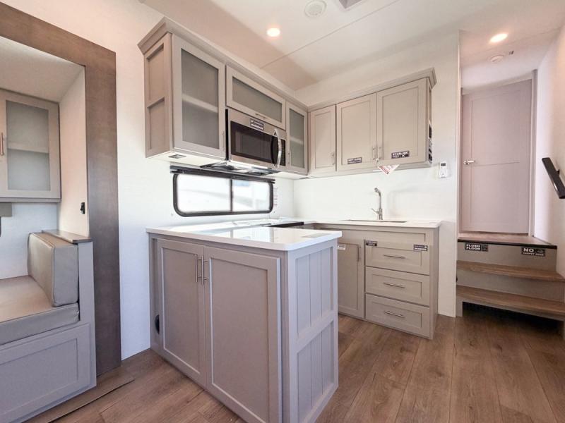 A benchmark chassis creates a space saver upper deck with each one of these Avenue All-Access fifth wheels by Alliance RV! The 101 in. wide-body construction gives you more room to walk around and the flush slide out floors throughout prevent any tripping. There are composite sidewalls inside and out, and a seamless fully walkable PVC roof for extreme durability and zero maintenance. You are sure to love no carpet throughout making each Avenue All-Access easy to clean and allergen free, not to mention pet friendly. You can maximize your space throughout with innovative storage solutions like the hidden storage behind the TV, inside the end tables, ottoman, and dinette chairs. These units also include the OTG Solar Package with a 200 watt solar panel, 15 amp MPPT charger, multiple outlets, and more to keep you powered up!
