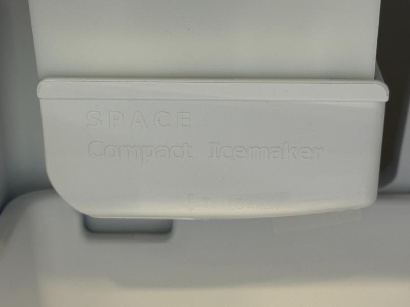 Residential-style kitchen: large refrigerator (110V Samsung), kitchen island, solid surface countertops.