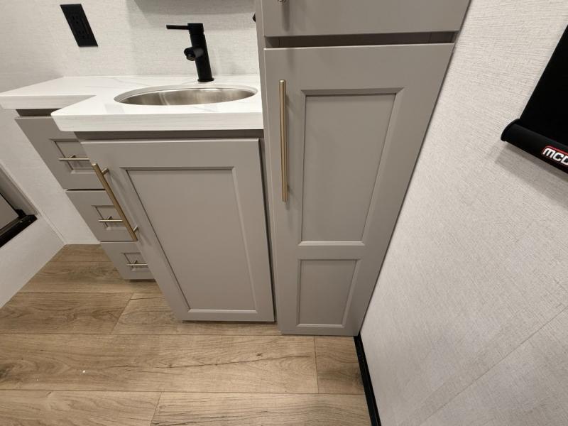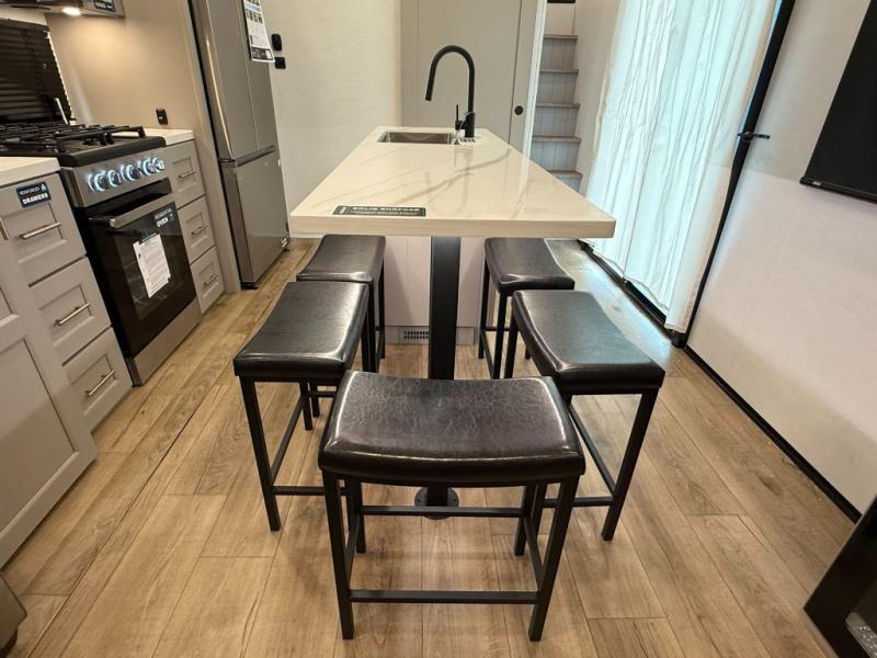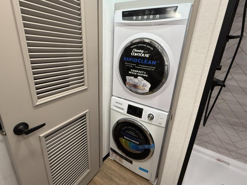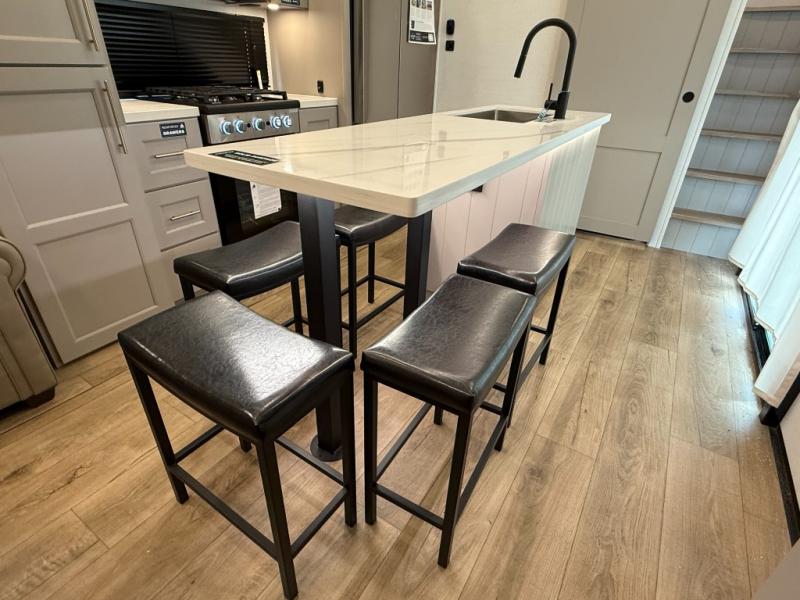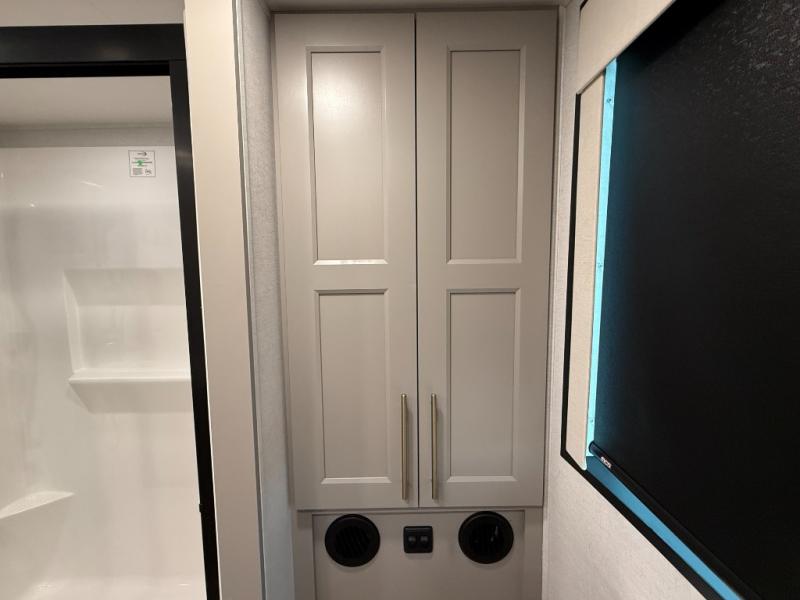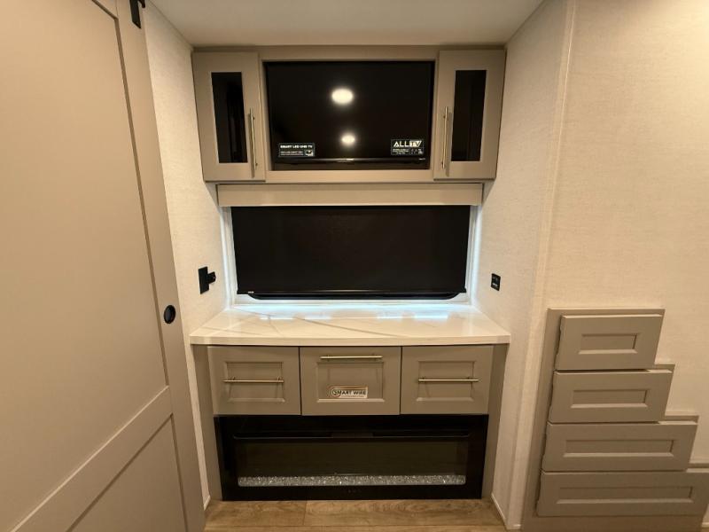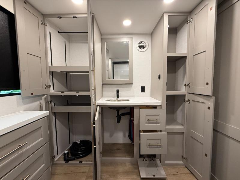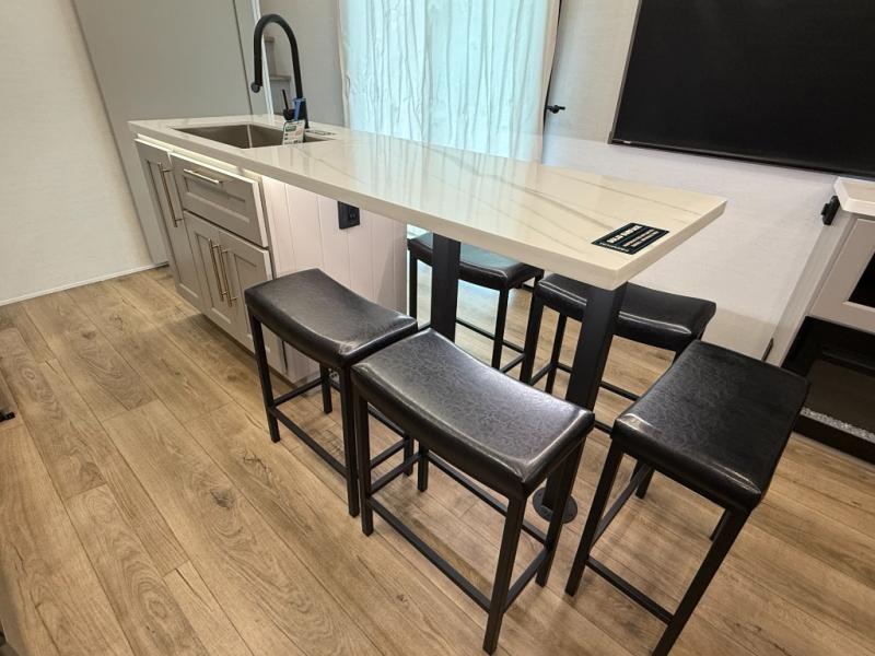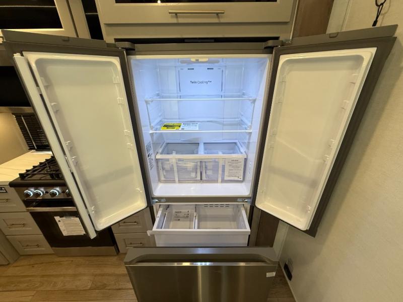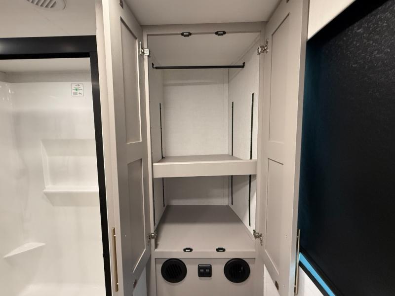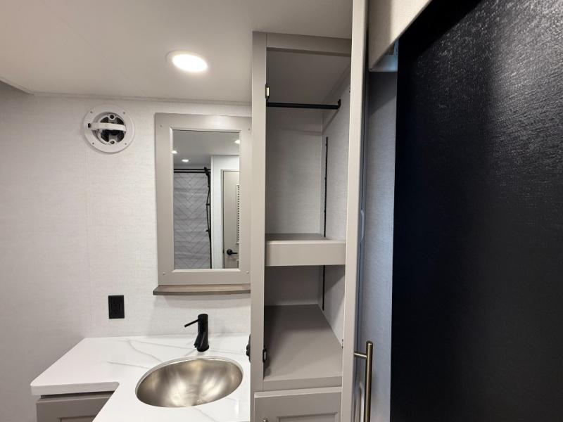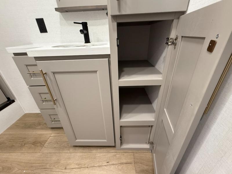 High build quality touches: Azdel composite fiberglass sidewalls, full fiberglass front cap, large windshield, soft-close doors/drawers, slide topper awnings, quality cabinetry.
