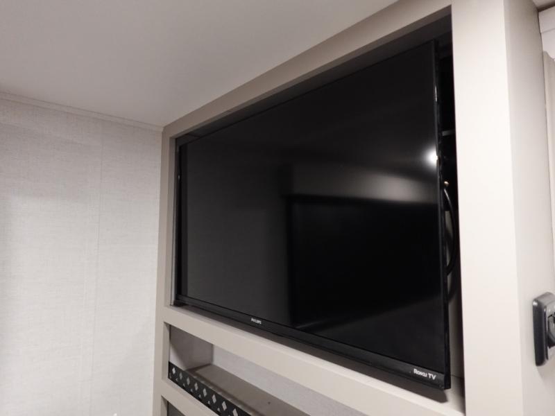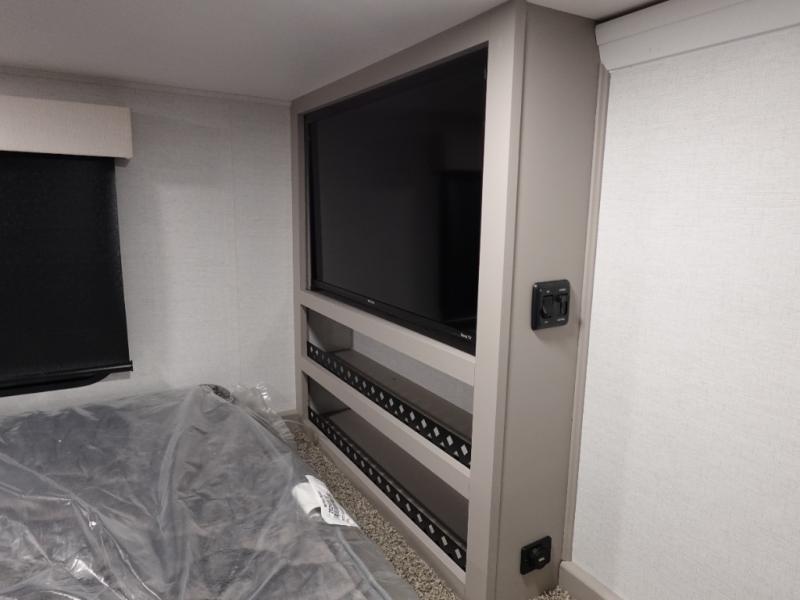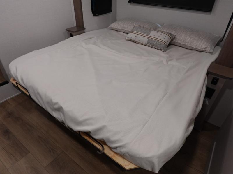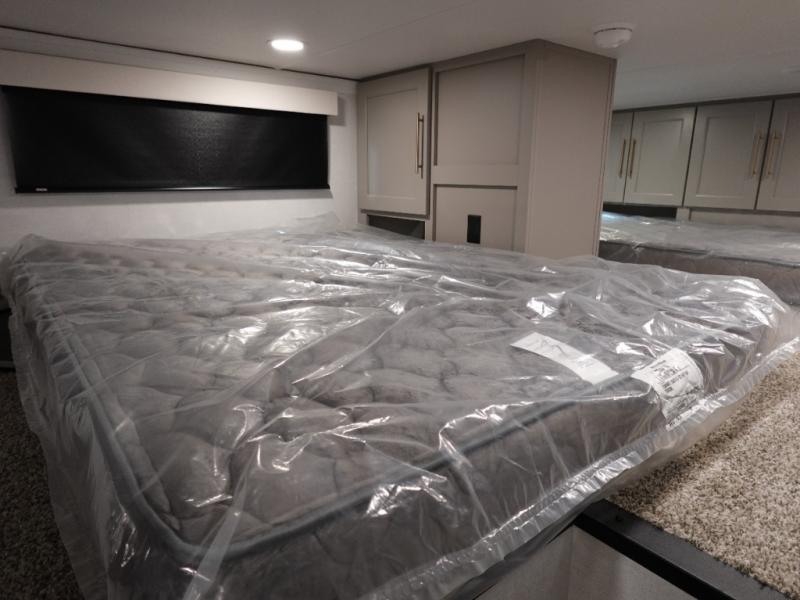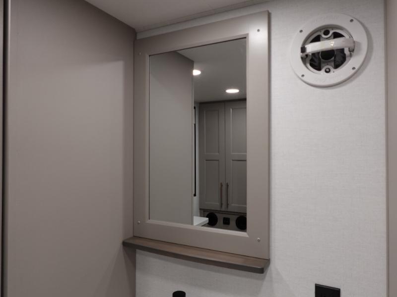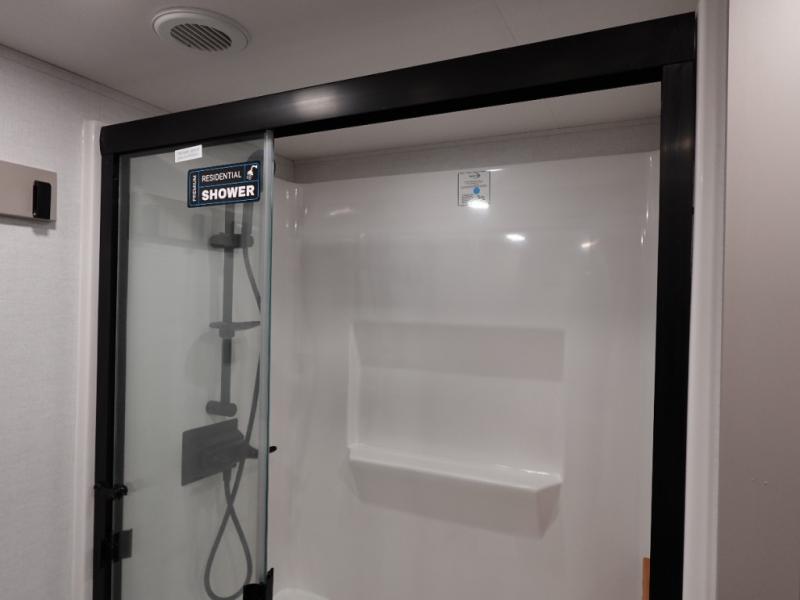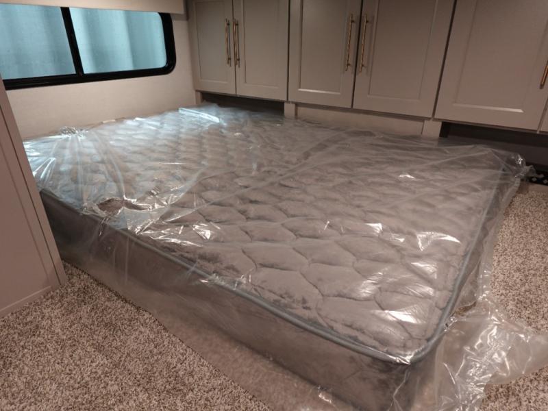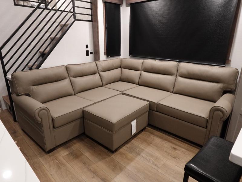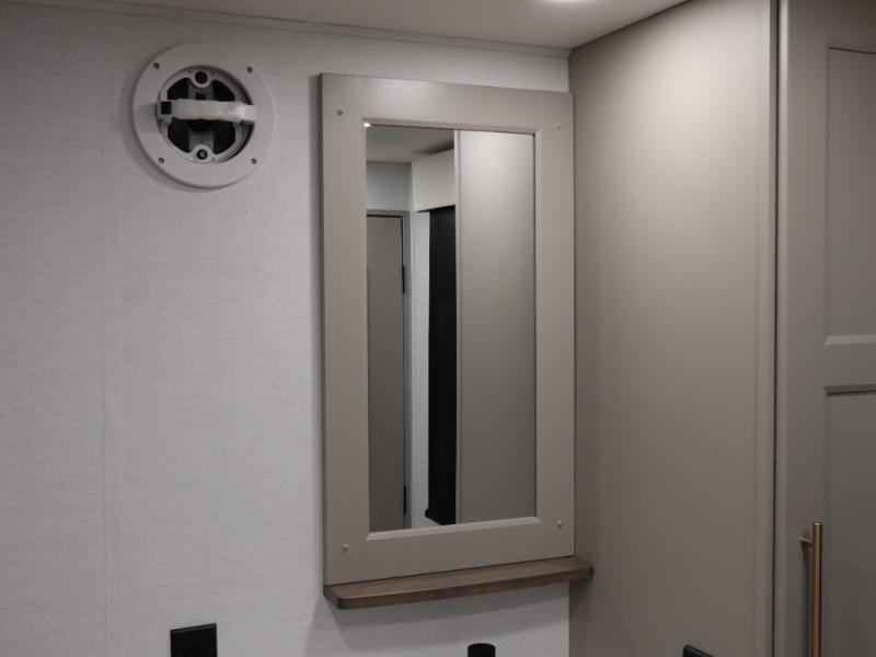 This destination trailer is perfect for a big crowd since it has one Power Tilting king bed, three mattress and an L- shape sofa. Experience the in-home feeling with the amazing kitchen and living room, furnished with a Kitchen island, L- shape sofa and a residential 110 V fridge. Also, you can sense the extreme coziness thanks to the dual fire places and get 24/7 entertainment due to the four TVs along the trailer. Plenty of place can be found in the front and rear loft bedrooms with three wardrobes in total. Lastly the two full bathrooms will allow you to comfortably take a shower after a long day.