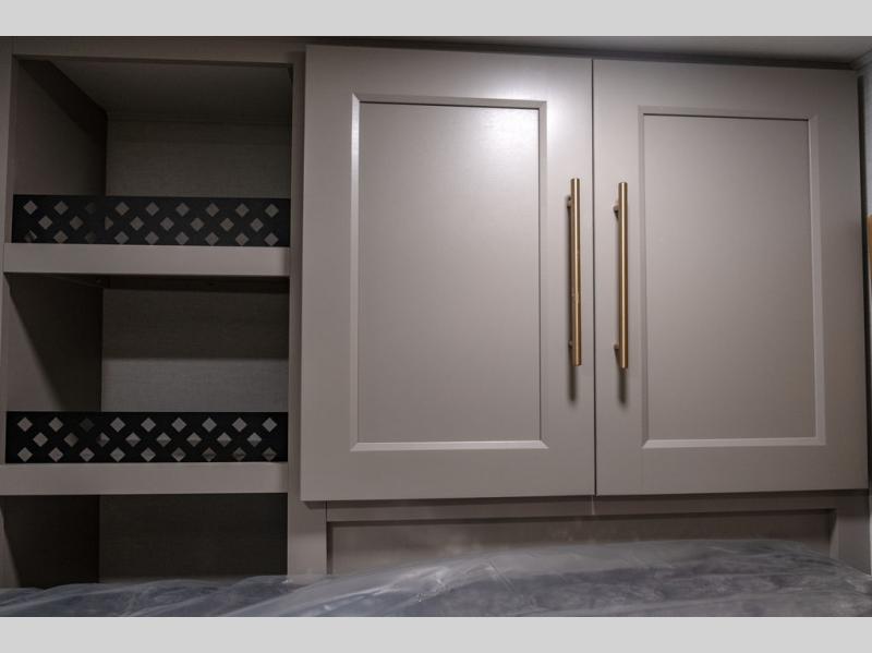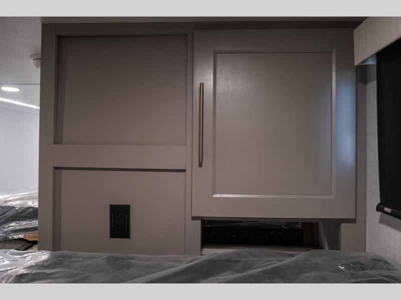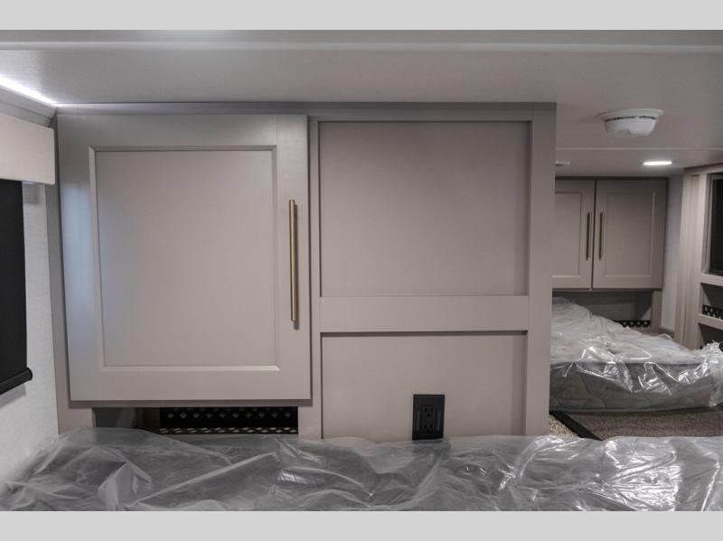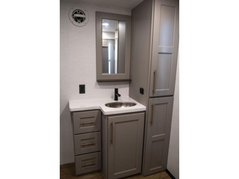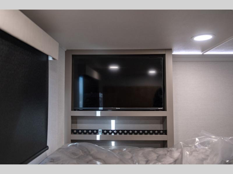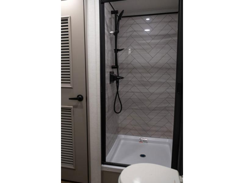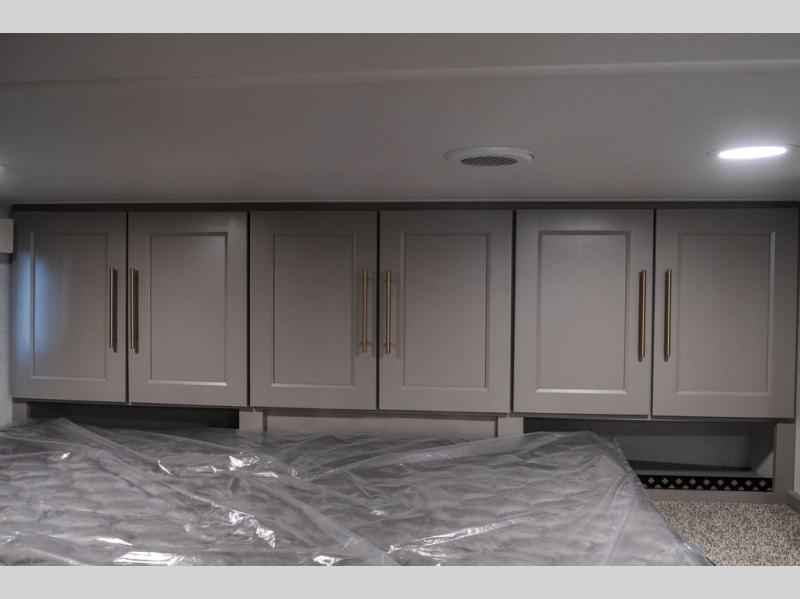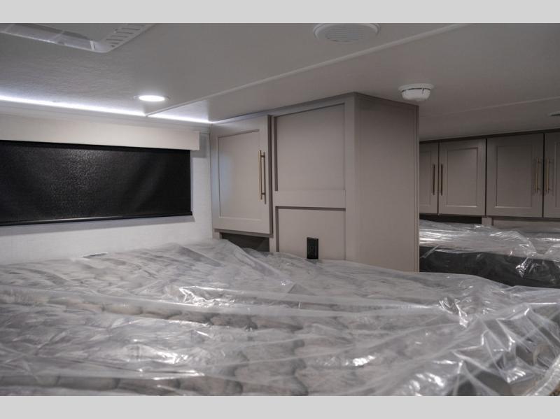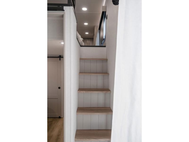 This destination trailer is perfect for a big crowd since it has one Power Tilting king bed, three mattress and an L- shape sofa. Experience the in-home feeling with the amazing kitchen and living room, furnished with a Kitchen island, L- shape sofa and a residential 110 V fridge. Also, you can sense the extreme coziness thanks to the dual fire places and get 24/7 entertainment due to the four TVs along the trailer. Plenty of place can be found in the front and rear loft bedrooms with three wardrobes in total. Lastly the two full bathrooms will allow you to comfortably take a shower after a long day.