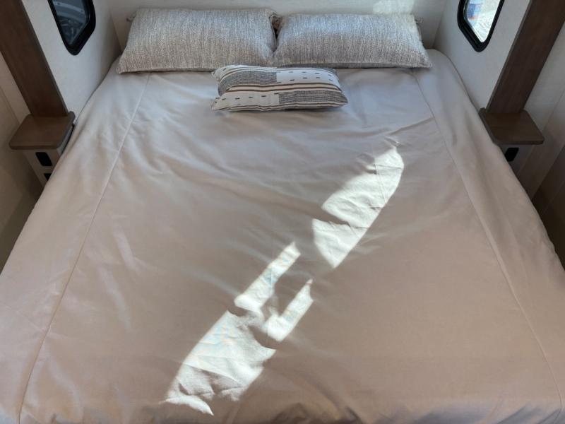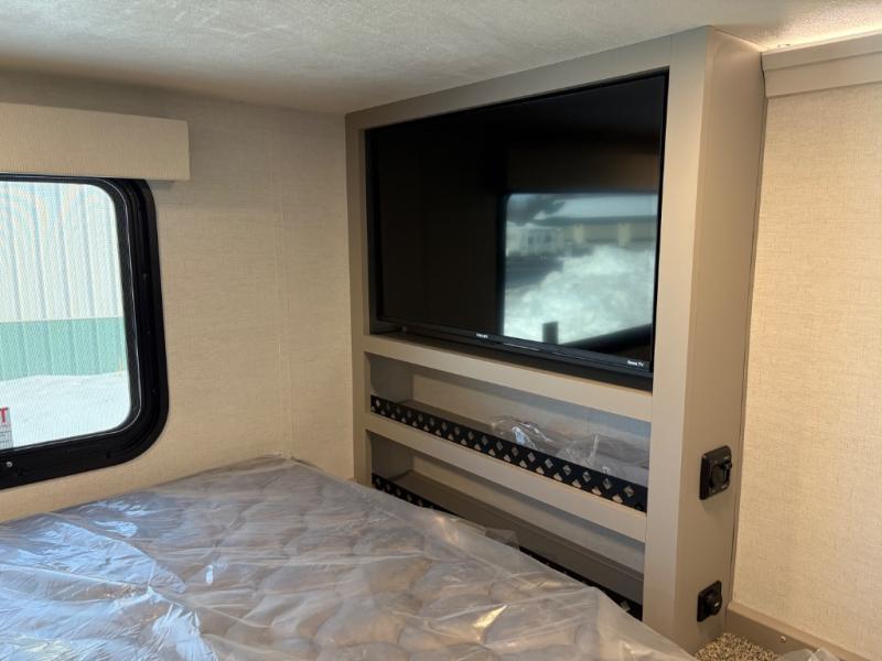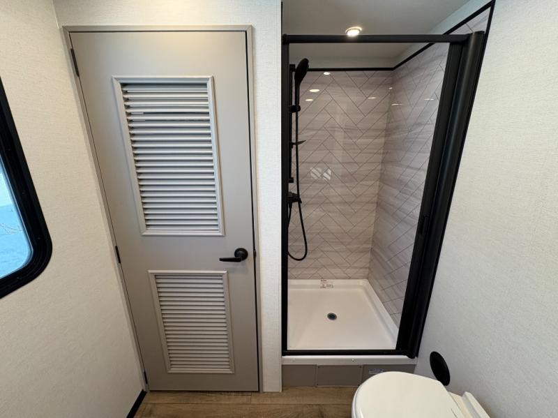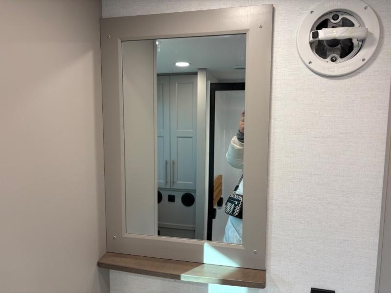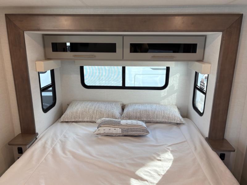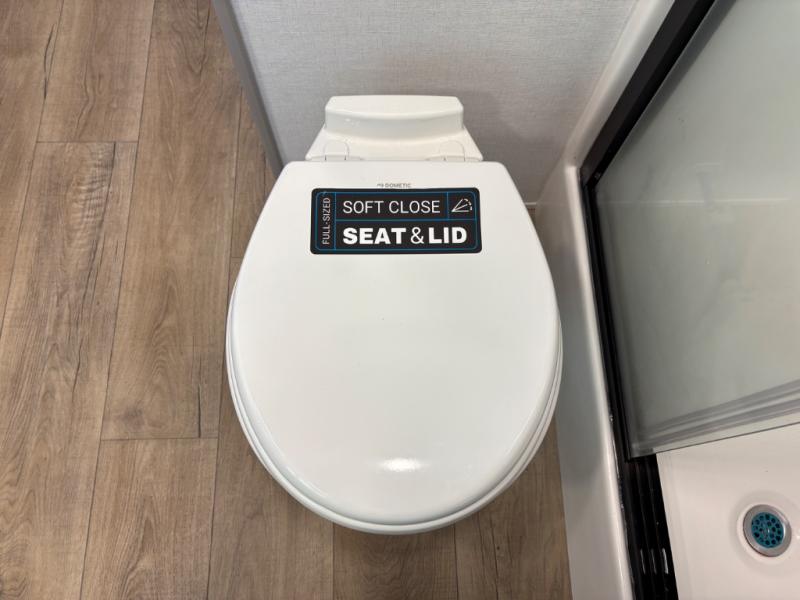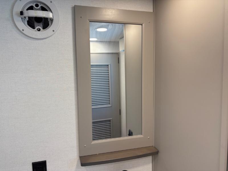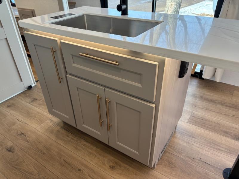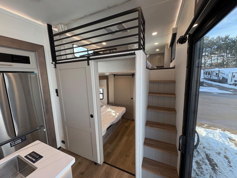This destination trailer is perfect for a big crowd since it has one Power Tilting king bed, three mattress and an L- shape sofa. Experience the in-home feeling with the amazing kitchen and living room, furnished with a Kitchen island, L- shape sofa and a residential 110 V fridge. Also, you can sense the extreme coziness thanks to the dual fire places and get 24/7 entertainment due to the four TVs along the trailer. Plenty of place can be found in the front and rear loft bedrooms with three wardrobes in total. Lastly the two full bathrooms will allow you to comfortably take a shower after a long day.