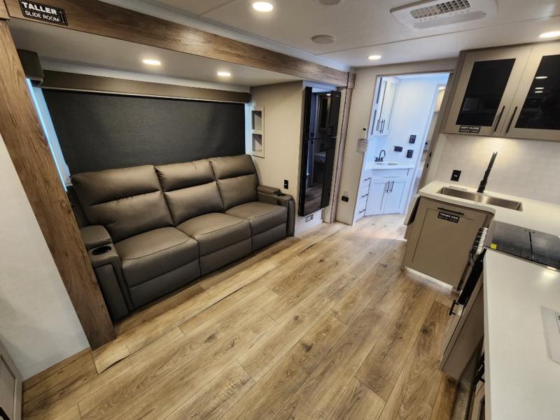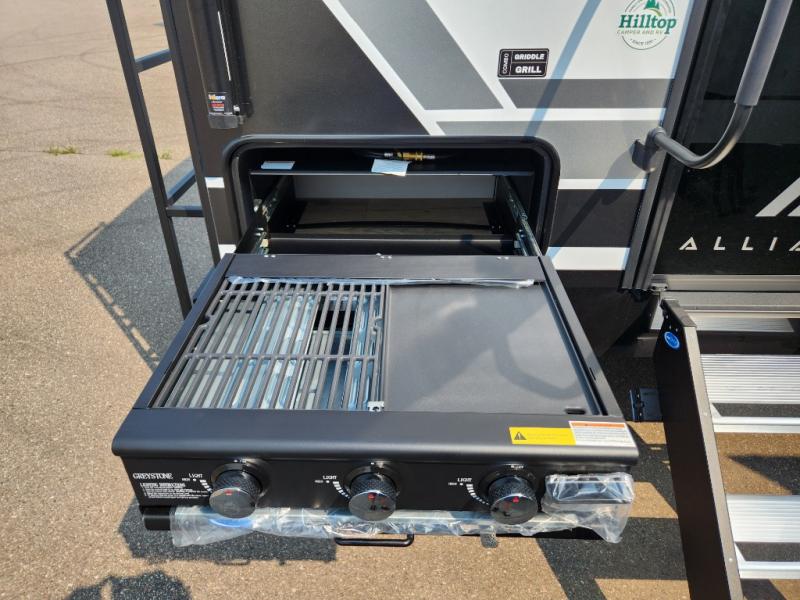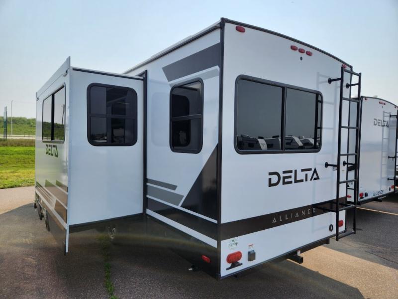 Form and function works together with every one of these Alliance RV Delta travel trailers! They are built with a walk-on roof with a seamless PVC roof covering, Mylar reinforced exterior seals, and a heated and enclosed underbelly to protect your unit in all seasons. The commercial grade vinyl flooring will be easy to clean and the oversized atrium windows throughout let in plenty of natural sunlight. With 62 cu. ft. of drop frame pass-through storage, you can bring along all of your essential camping gear plus it has USB charging for more convenience. There are many at home interior conveniences including a Bluetooth speaker, USB charging throughout, and even a pull-out kitchen trash can. Come find your favorite model today!