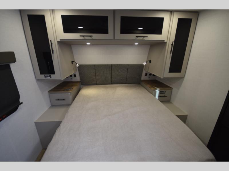The smart walk-through bath leads to your own private bedroom, where a queen bed and dual wardrobe nightstands await. An exterior entry door in the bedroom makes it easy to sneak out for early morning sunrises without disturbing the rest of the crew.