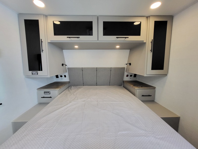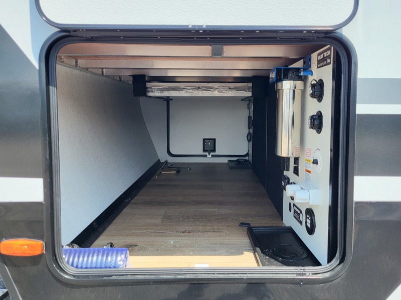 Grab your hiking boots and your sense of adventure for fun camping trips in this single slide out travel trailer. The rear booth dinette includes overhead storage for your things and the sofa slide out is in great view of the 40" HDTV. There is also a fireplace here that will make your space feel more like home plus more storage space, including an entryway pantry and storage above the 10 cu. ft. 12V refrigerator. A walk-through bath will take you to the front master bedroom with a queen bed, wardrobe nightstands, plus its own exterior entry door!