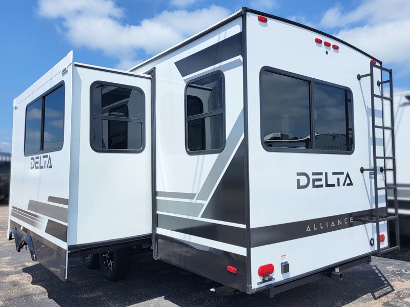Form and function works together with every one of these Alliance RV Delta travel trailers! They are built with a walk-on roof with a seamless PVC roof covering, Mylar reinforced exterior seals, and a heated and enclosed underbelly to protect your unit in all seasons. The commercial grade vinyl flooring will be easy to clean and the oversized atrium windows throughout let in plenty of natural sunlight. With 62 cu. ft. of drop frame pass-through storage, you can bring along all of your essential camping gear plus it has USB charging for more convenience. There are many at home interior conveniences including a Bluetooth speaker, USB charging throughout, and even a pull-out kitchen trash can. Come find your favorite model today!