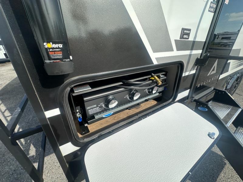 Form and function works together with every one of these Alliance RV Delta travel trailers! They are built with a walk-on roof with a seamless PVC roof covering, Mylar reinforced exterior seals, and a heated and enclosed underbelly to protect your unit in all seasons. The commercial grade vinyl flooring will be easy to clean and the oversized atrium windows throughout let in plenty of natural sunlight. With 62 cu. ft. of drop frame pass-through storage, you can bring along all of your essential camping gear plus it has USB charging for more convenience. There are many at home interior conveniences including a Bluetooth speaker, USB charging throughout, and even a pull-out kitchen trash can. Come find your favorite model today!