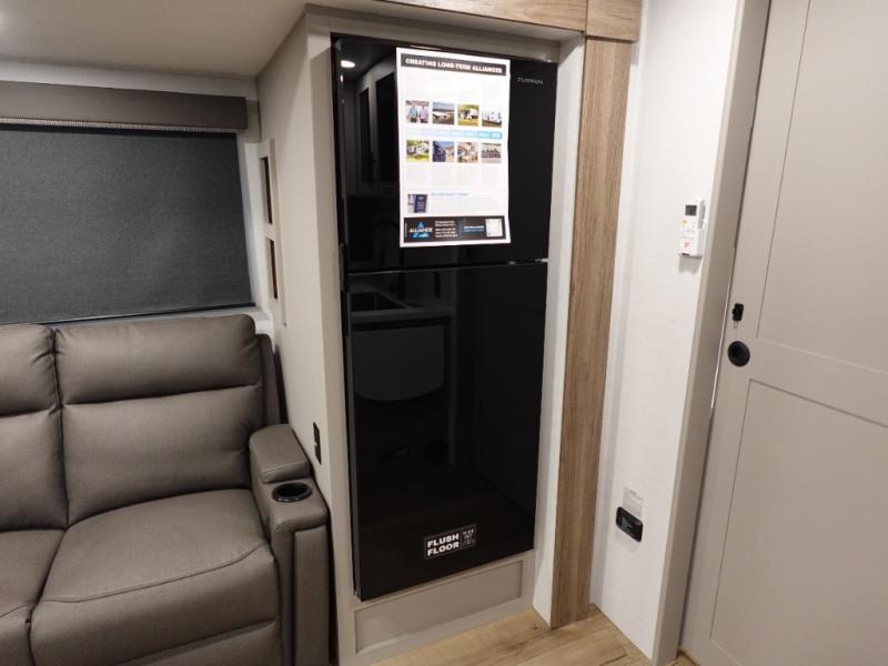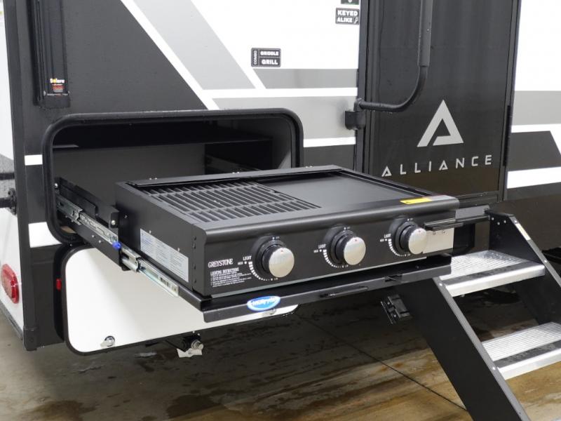 Form and function works together with every one of these Alliance RV Delta travel trailers! They are built with a walk-on roof with a seamless PVC roof covering, Mylar reinforced exterior seals, and a heated and enclosed underbelly to protect your unit in all seasons. The commercial grade vinyl flooring will be easy to clean and the oversized atrium windows throughout let in plenty of natural sunlight. With 62 cu. ft. of drop frame pass-through storage, you can bring along all of your essential camping gear plus it has USB charging for more convenience. There are many at home interior conveniences including a Bluetooth speaker, USB charging throughout, and even a pull-out kitchen trash can. Come find your favorite model today!