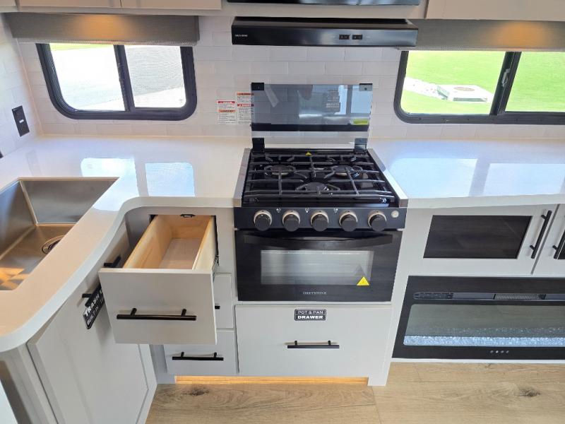 Form and function works together with every one of these Alliance RV Delta travel trailers! They are built with a walk-on roof with a seamless PVC roof covering, Mylar reinforced exterior seals, and a heated and enclosed underbelly to protect your unit in all seasons. The commercial grade vinyl flooring will be easy to clean and the oversized atrium windows throughout let in plenty of natural sunlight. With 62 cu. ft. of drop frame pass-through storage, you can bring along all of your essential camping gear plus it has USB charging for more convenience. There are many at home interior conveniences including a Bluetooth speaker, USB charging throughout, and even a pull-out kitchen trash can. Come find your favorite model today!